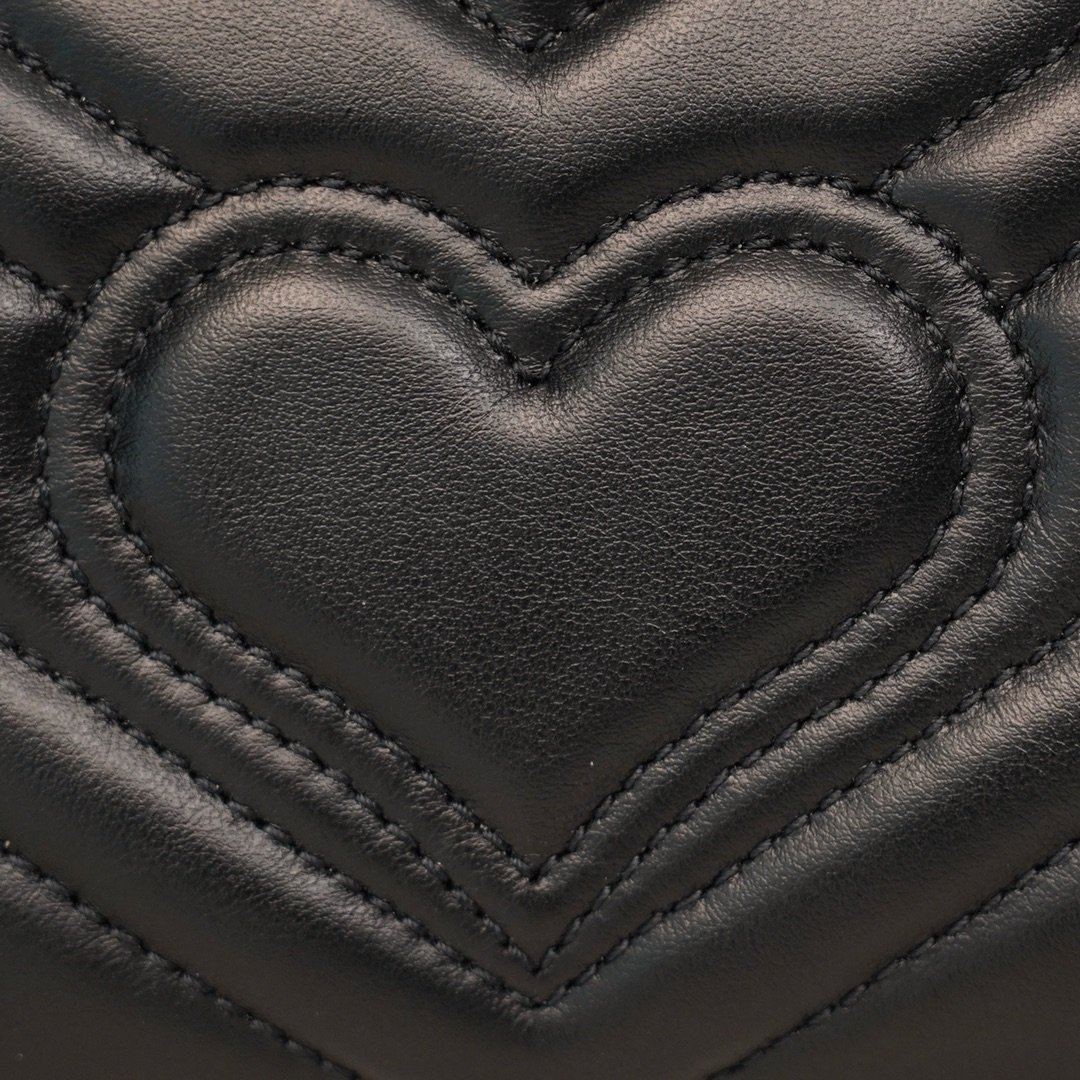 quilted 𝐕 leather, the back of the decorated with a heart pattern