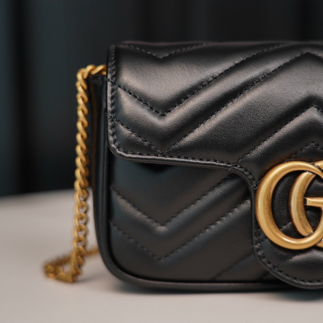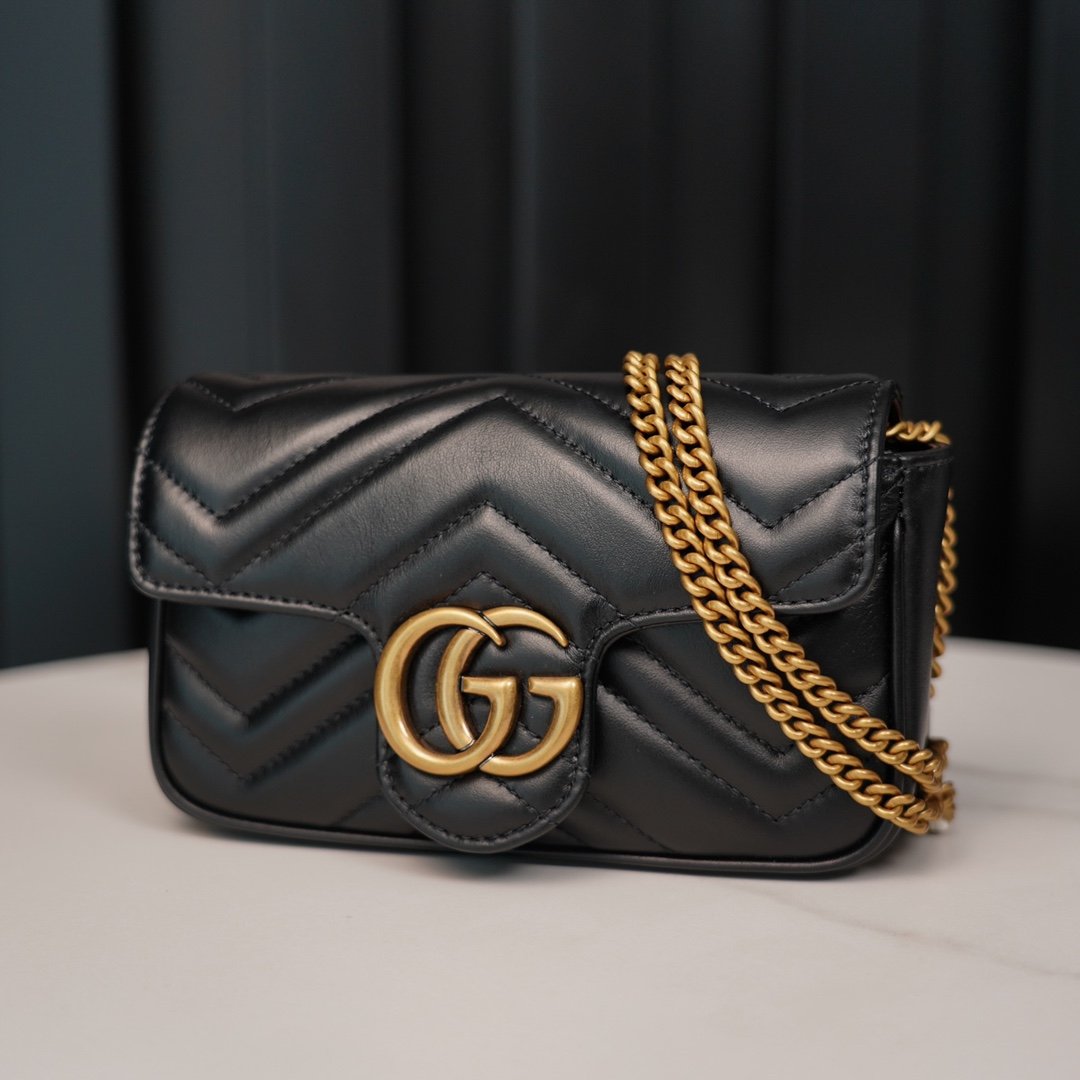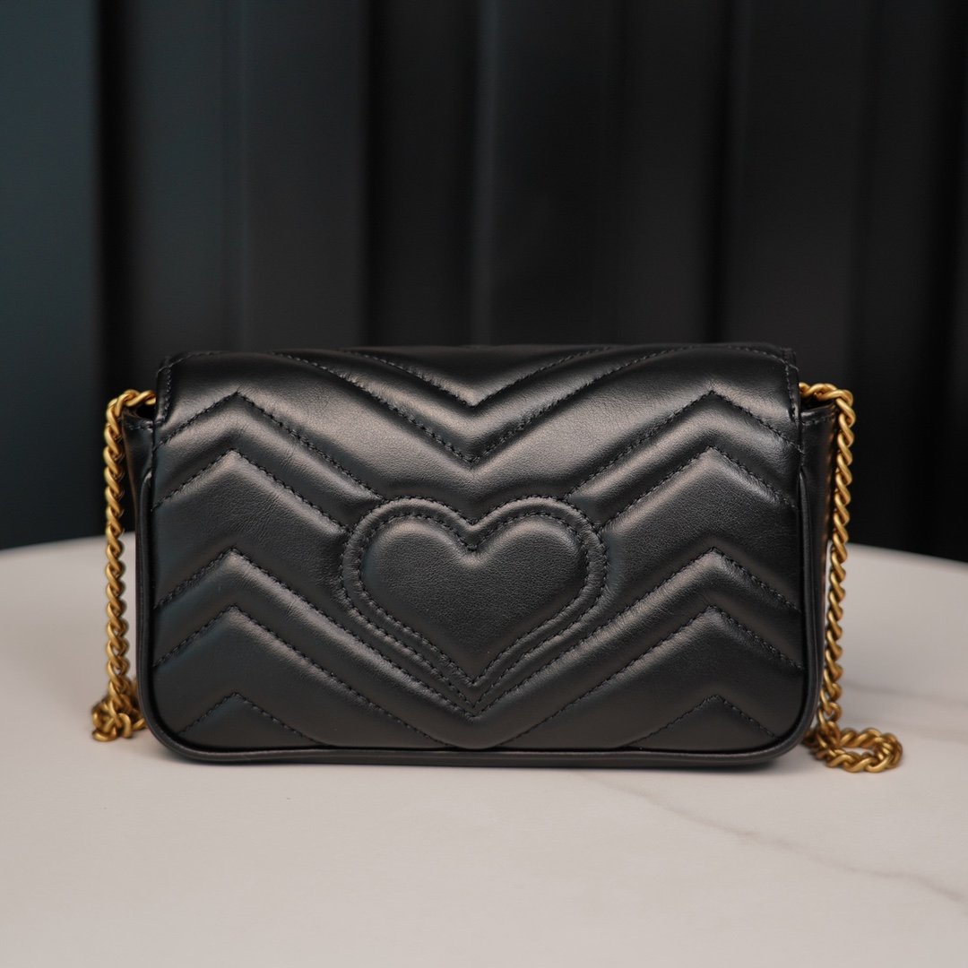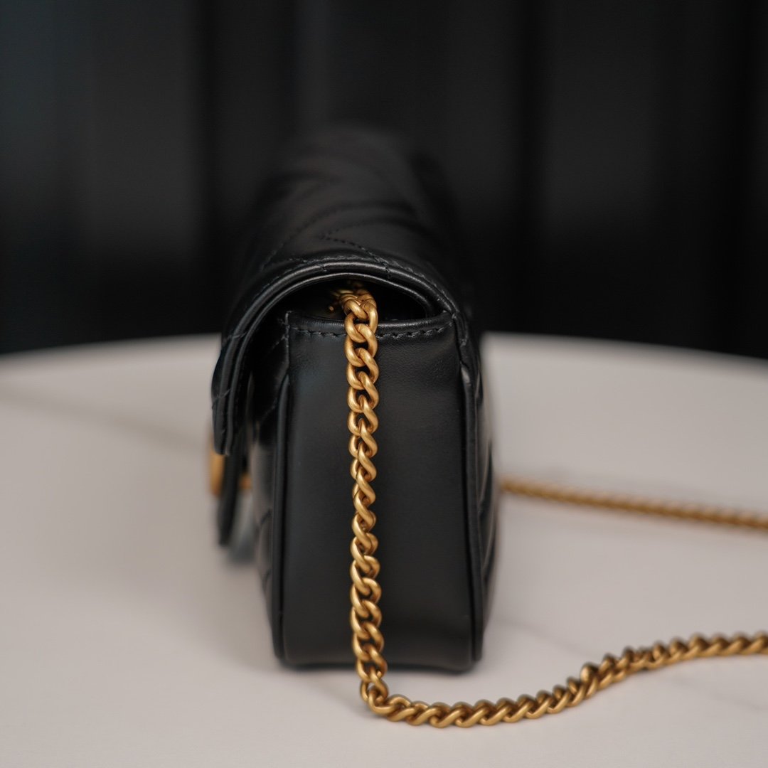 n Quite structured with a soft The soft, structured shape and large flap closure, recognizable double 𝐆 accessories give the bag more charm 〰