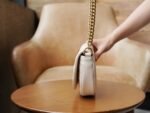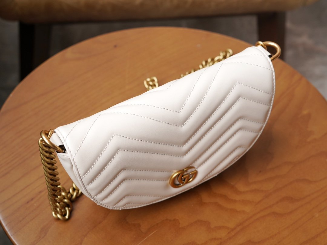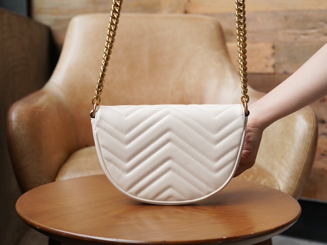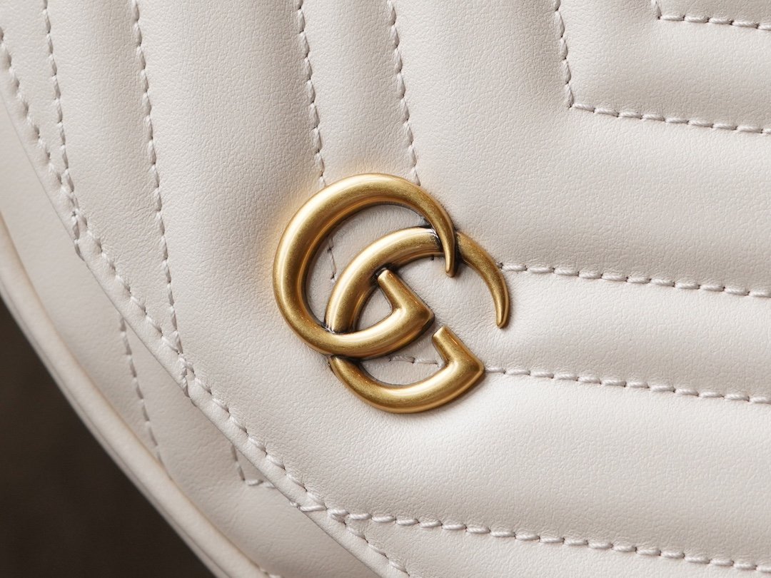 The Double G accessory design infuses the brand’s contemporary style with a traditional essence, bringing timeless pieces to the closet. Crafted in signature white quilted V leather, this chain mini handbag features two card compartments inside.
