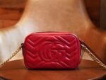 ๐†๐† ๐Œ๐š๐ซ๐ฆ๐จ๐ง๐ญ Series Mini Camera Bag Red n quite Structured soft shape with top zipper closure with double G metal hardware. Leather shoulder pads with chain shoulder strap detailing for greatly increased wearing comfort. Wave pattern quilted leather with double ๐† logo on the back, the overall shape is soft but not too strong. Since its launch, the n camera bag series has had an intriguing fashion tone, and has been presented in an avant-garde retro style with a drop-dead simple temperament ใ€ฐใ€ฐใ€ฐnSize: 18*12*6cm nModel No.: 448065