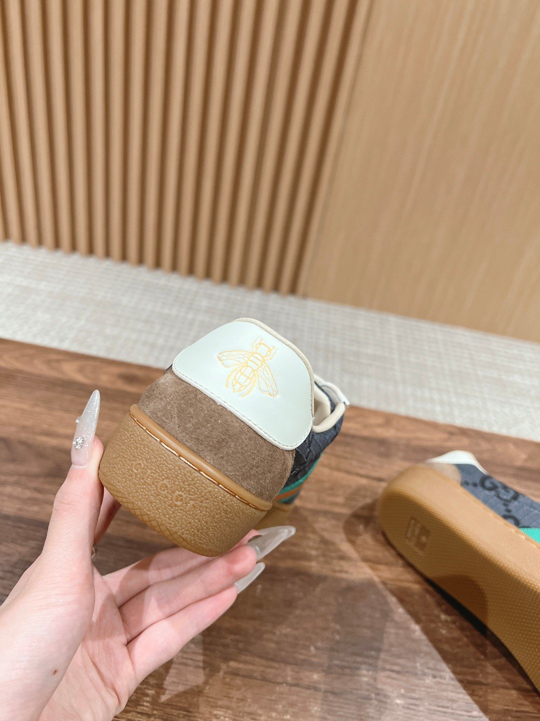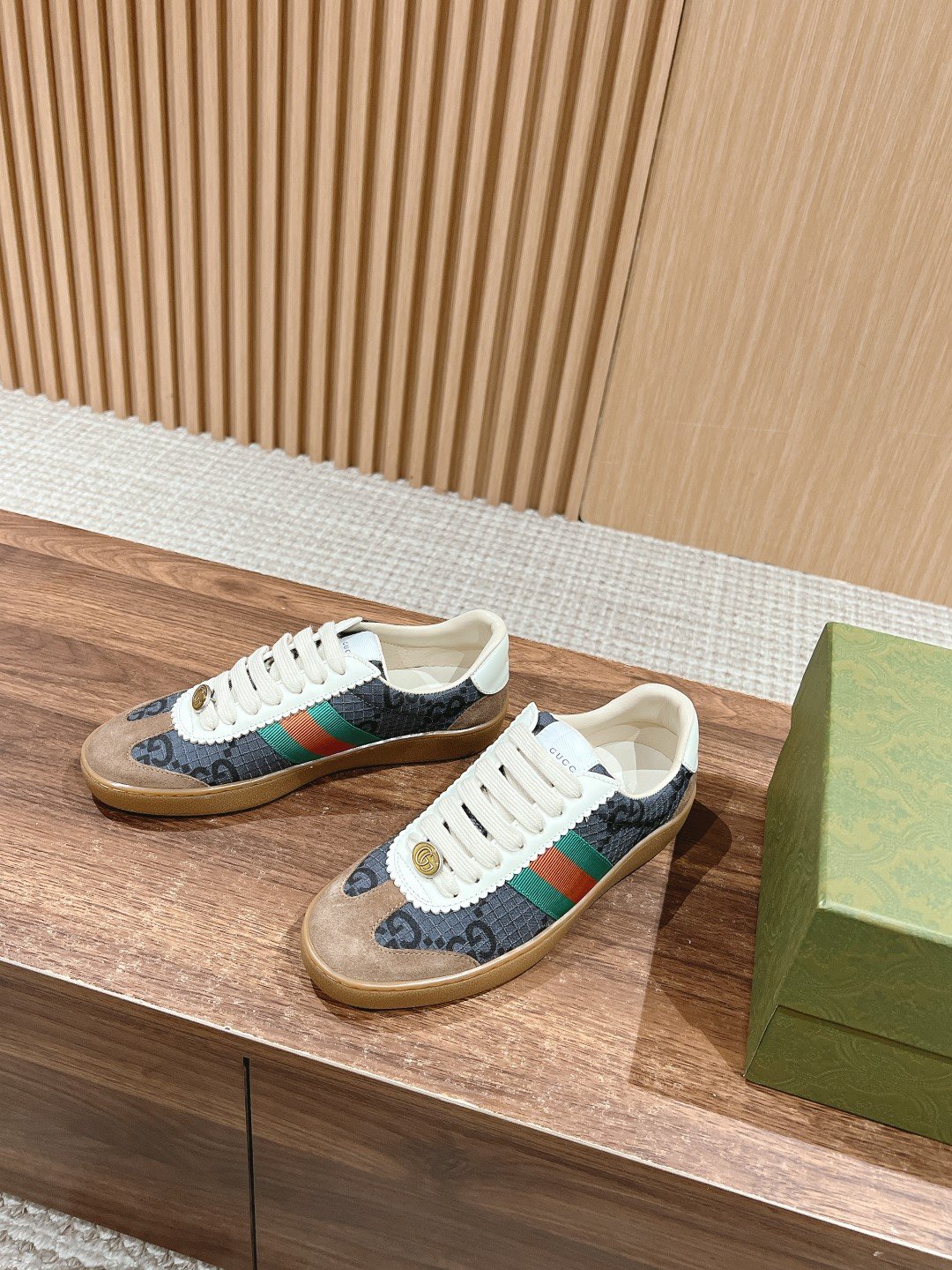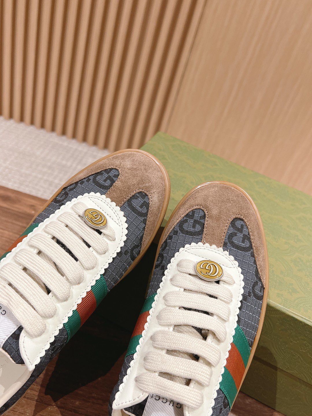 #Couple Size [Fluorescent Green Old Fashioned] ๐†๐ฎ๐œ๐œ๐ข ๐‘๐ž-๐–๐ž ๐› As Sabato De Sarno’s first sneaker for Gucci, the Re-Web collection reinterprets the brand’s classic stripes with bold, irreverent detailing against a modern silhouette crafted in white leather, the new sneakers are embellished with a number of the brand’s iconic details and a bright red and green lace-up tongue, making them an instant favorite. The white leather is specially treated to be soft and supple with an embossed grained texturenn handwritten Gucci logo and interlocking double G webbing labeln with interlocking double G and handwritten Gucci logoRubber outsolen with interlocking double G detailingEyeletsn with webbing tongueSize: Women 35-40M Men 39-44M