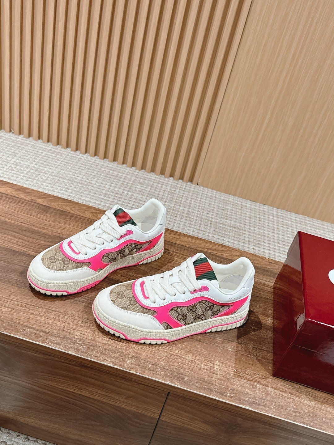 #Couple Size [Pure White] ๐†๐ฎ๐œ๐œ๐ข ๐‘๐ž-๐–๐ž ๐› As Sabato De Sarno’s first sneaker for Gucci, the Re-Web collection reinterprets the brand’s classic stripes with bold, irreverent detailing against a modern silhouette crafted in white leather, the new sneakers are embellished with a number of the brand’s iconic details and a bright red and green lace-up tongue, making them an instant favorite. The white leather is specially treated to be soft and supple with an embossed grained texturenn handwritten Gucci logo and interlocking double G webbing labeln with interlocking double G and handwritten Gucci logoRubber outsolen with interlocking double G detailingEyeletsn with webbing tongueSize: Women 35-40M Men 39-44M