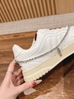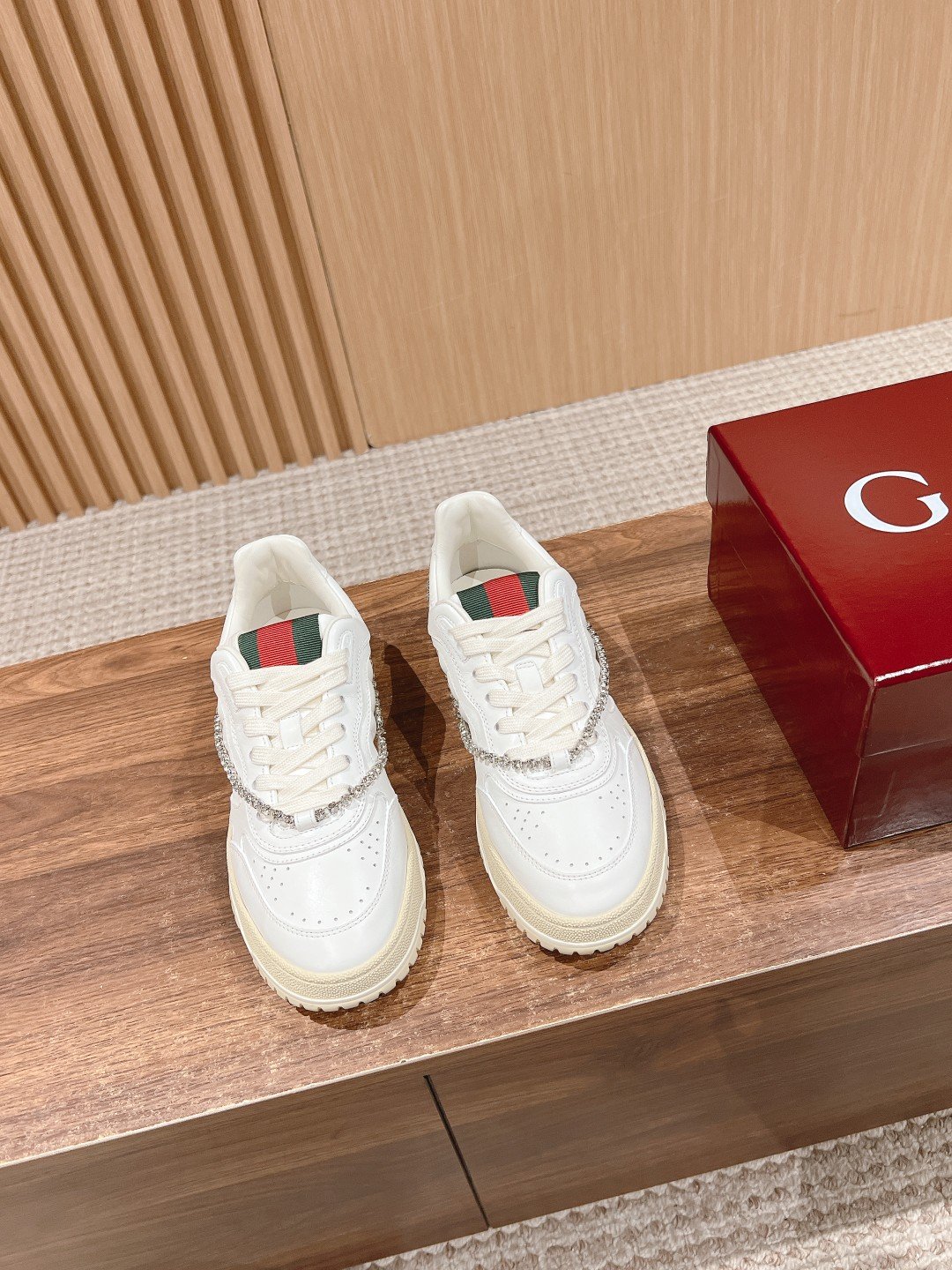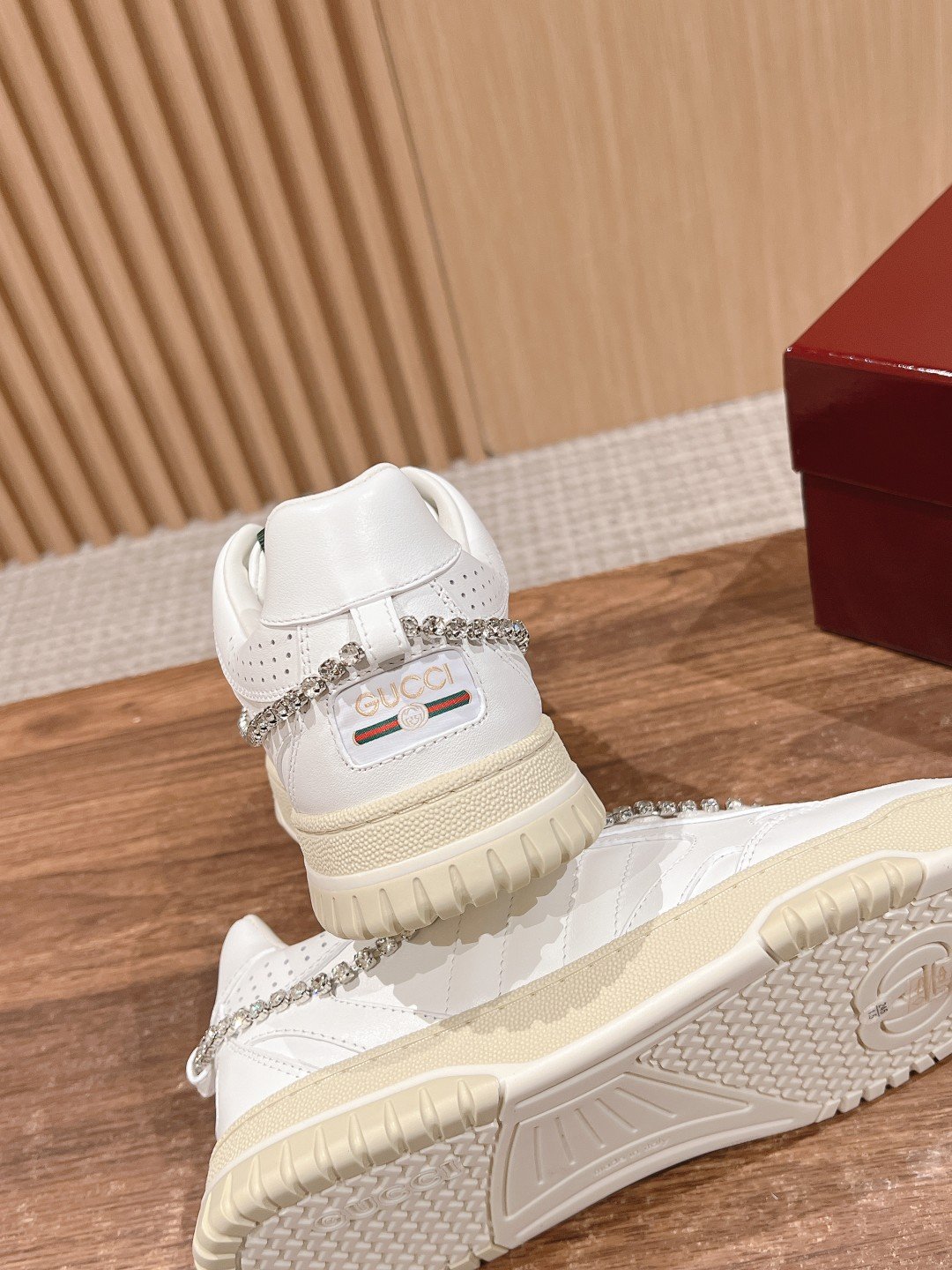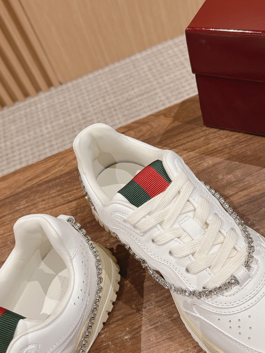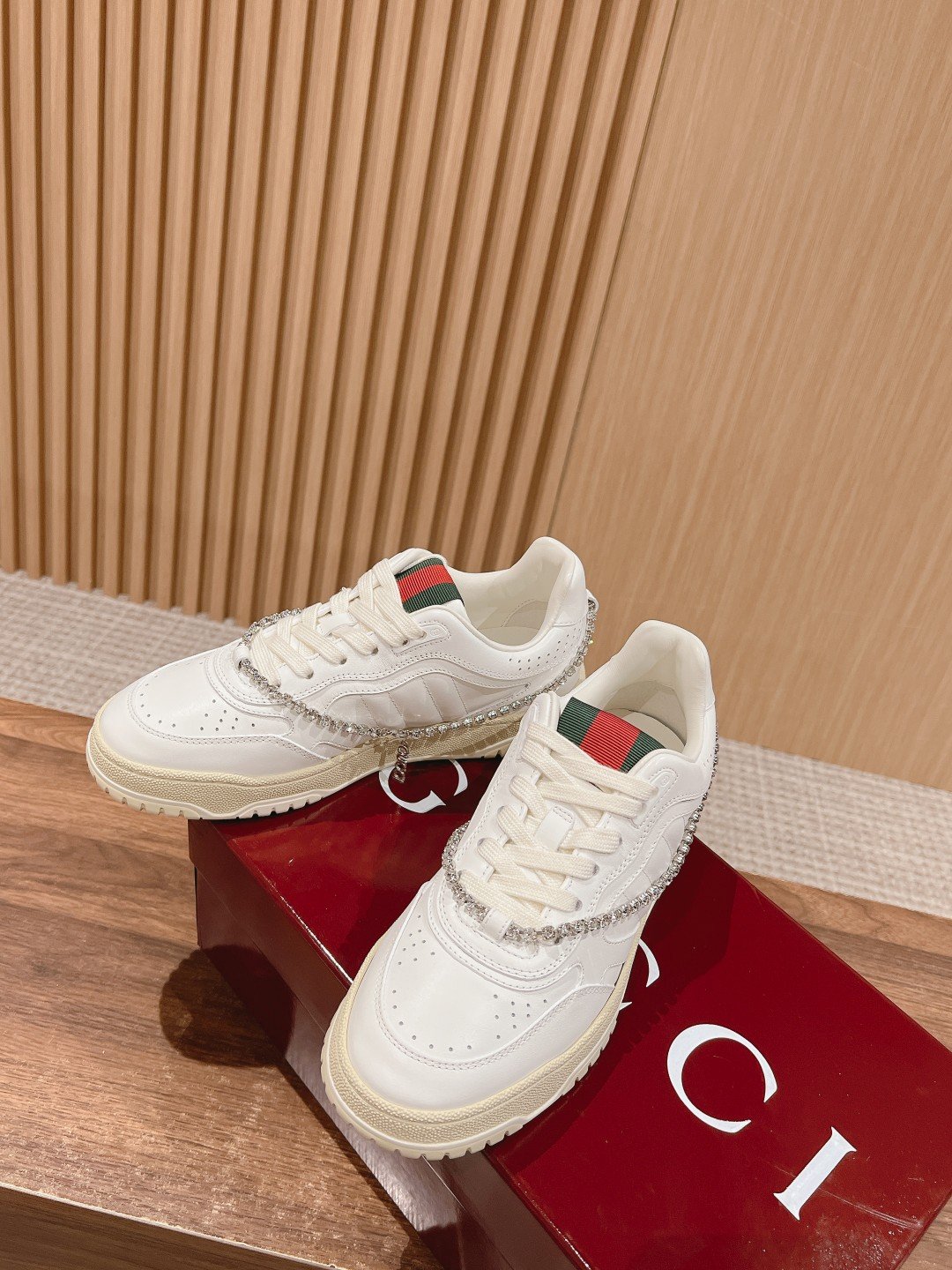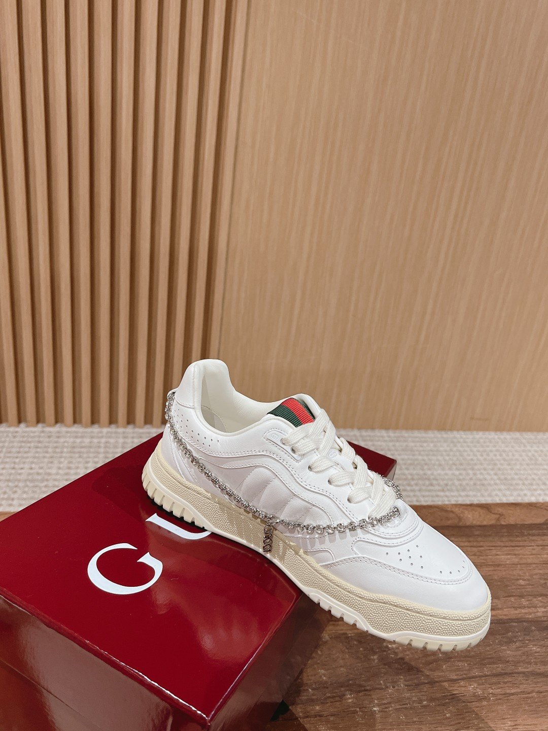 #๐๐ฎ๐๐๐ข ๐๐๐๐๐ ๐๐๐๐๐๐ ๐ As Sabato De Sarno’s first sneaker for Gucci, the Re-Web collection reinterprets the brand’s classic stripes with bold, irreverent detailing against a modern silhouette crafted in white leather, the new sneakers are embellished with a number of the brand’s iconic details and a bright red and green lace-up tongue, making them an instant favorite. The white leather is specially treated to be soft and supple, with an embossed grainy texture