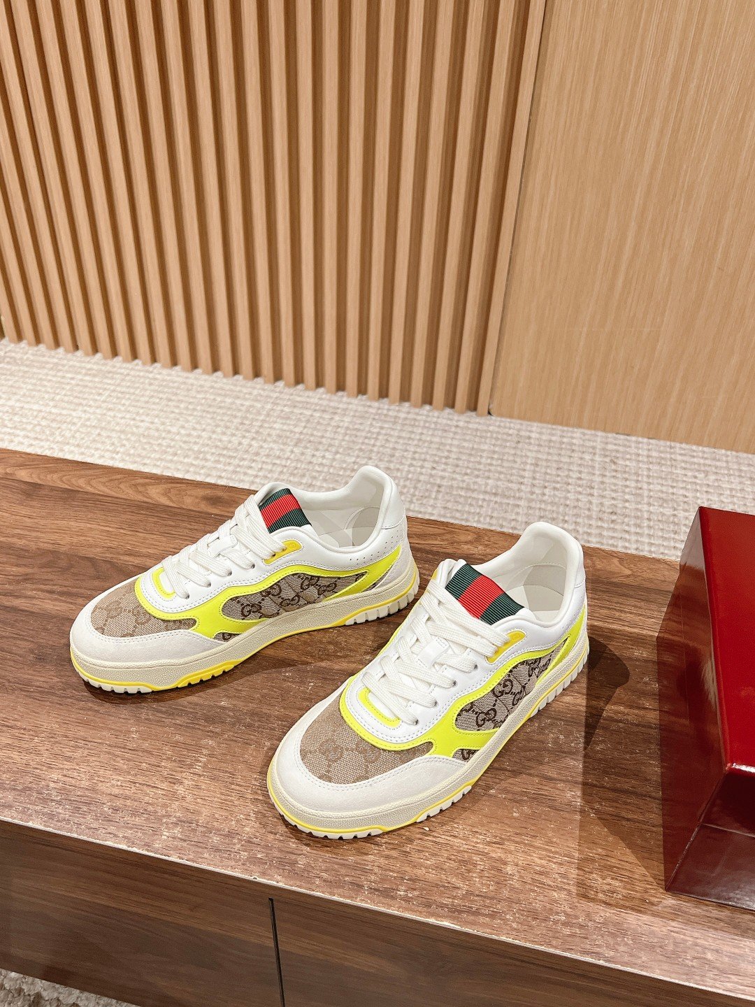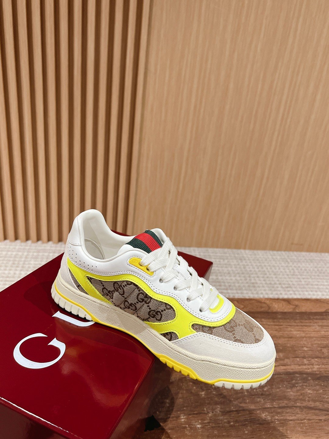 #๐†๐ฎ๐œ๐œ๐ข ๐‘๐ž๐ž๐ž๐› ๐›๐›๐›๐›๐›๐› ๐› As Sabato De Sarno’s first sneaker for Gucci, the Re-Web collection reinterprets the brand’s classic stripes with bold, irreverent detailing against a modern silhouette crafted in white leather, the new sneakers are embellished with a number of the brand’s iconic details and a bright red and green lace-up tongue, making them an instant favorite. The white leather is specially treated to be soft and supple, with an embossed grainy texturenn handwritten Gucci logo and interlocking double G webbing tagn embellished with interlocking double G and handwritten Gucci logoRubber outsolen embellished with interlocking double G detailingEyeletsn embellished with webbing tongueSize: Women’s 35-439 (40 made to orderNon-returnable)