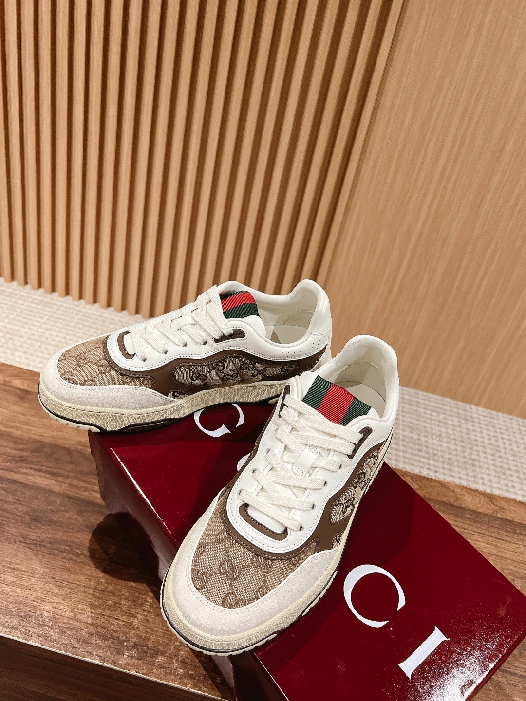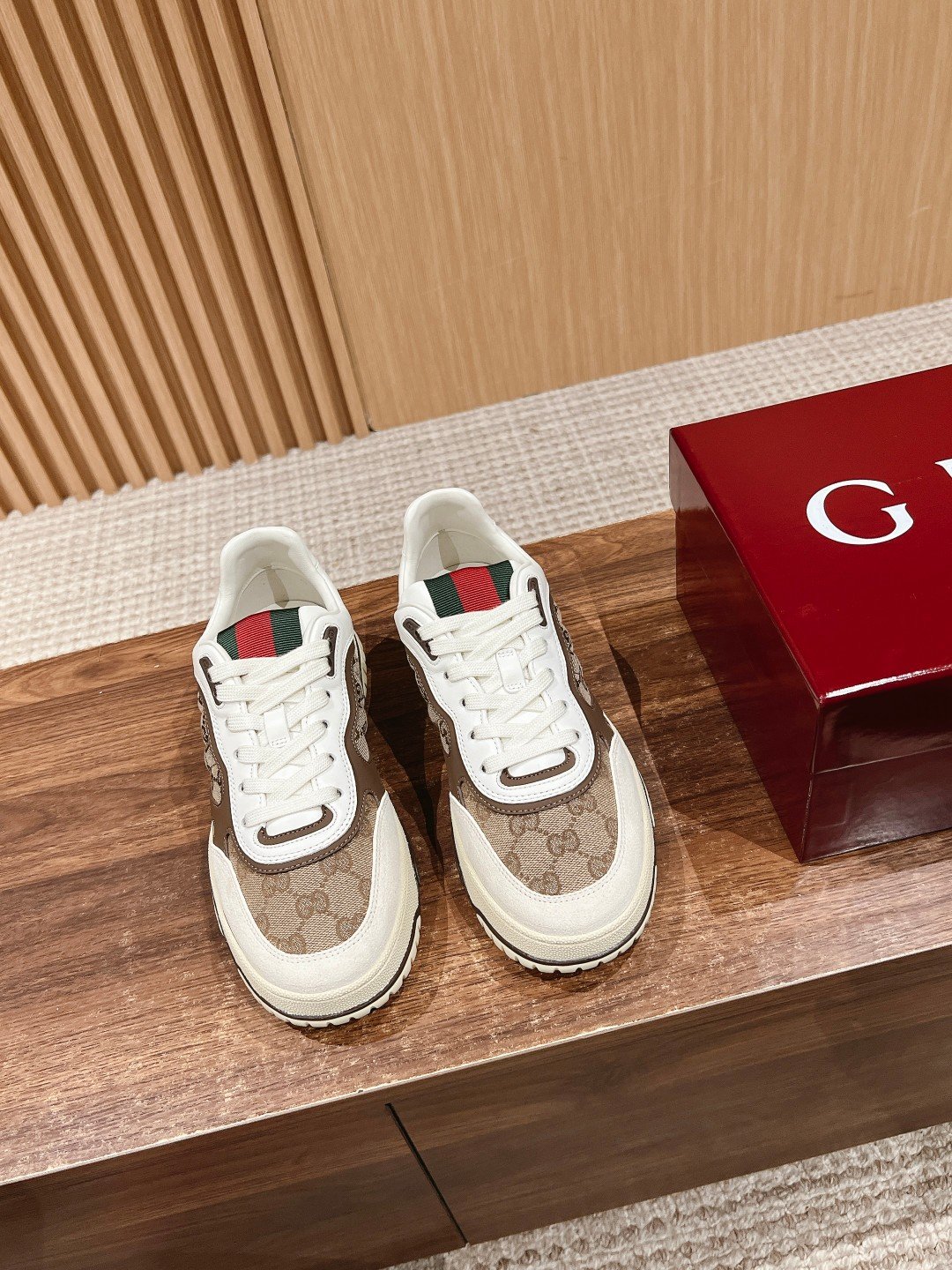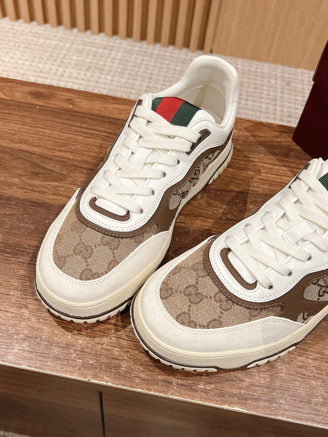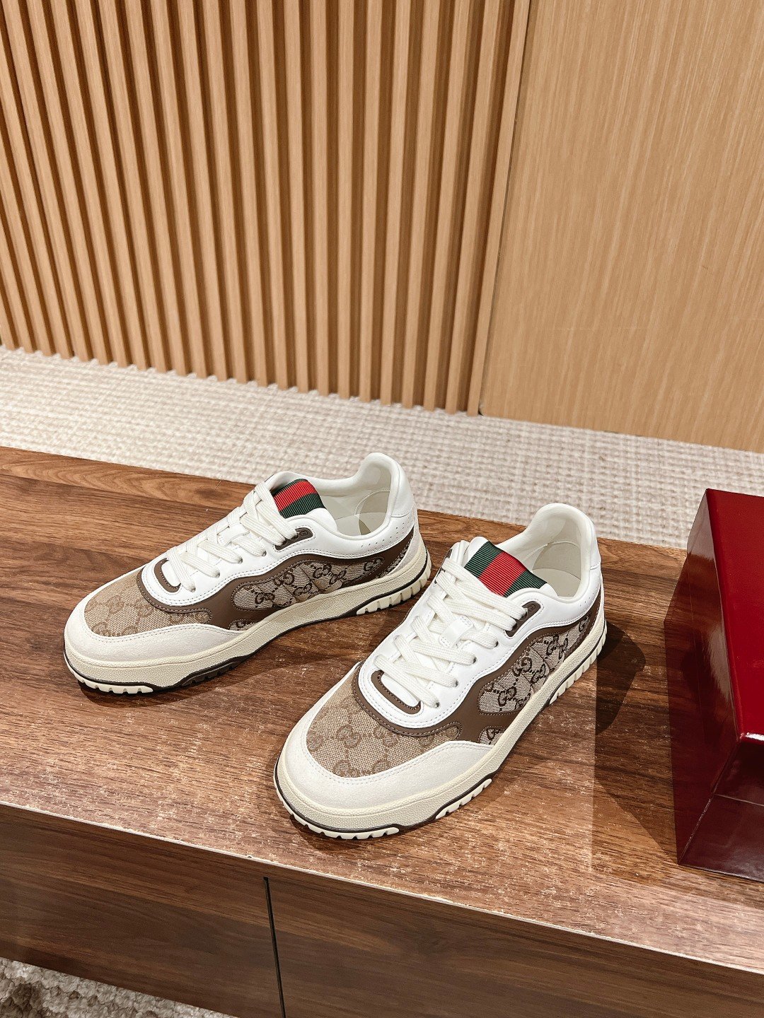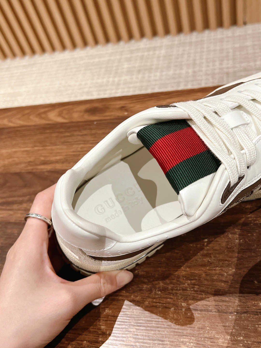#๐๐ฎ๐๐๐ข ๐๐๐ – ๐๐ ๐ As Sabato De Sarno’s first sneaker for Gucci, the Re-Web collection reinterprets the brand’s classic stripes with bold, irreverent detailing against a modern silhouette crafted in white leather, the new sneakers are embellished with a number of the brand’s iconic details and a bright red and green lace-up tongue, making them an instant favorite. The white leather has been specially treated to be soft and supple, with an embossed grained texture