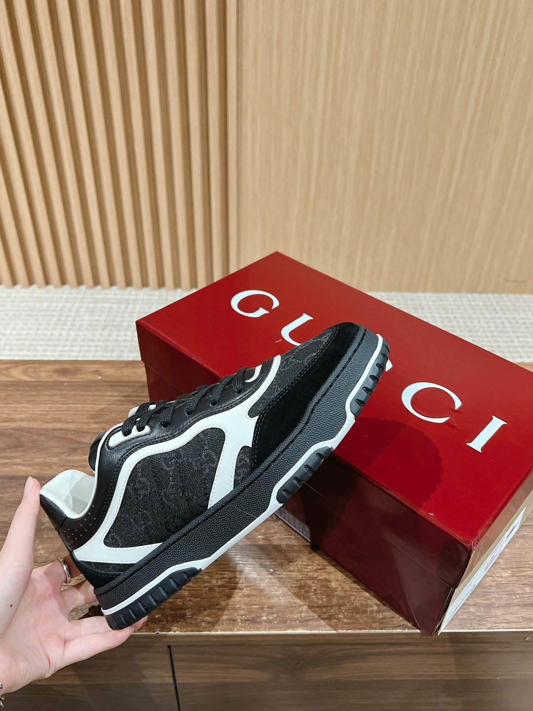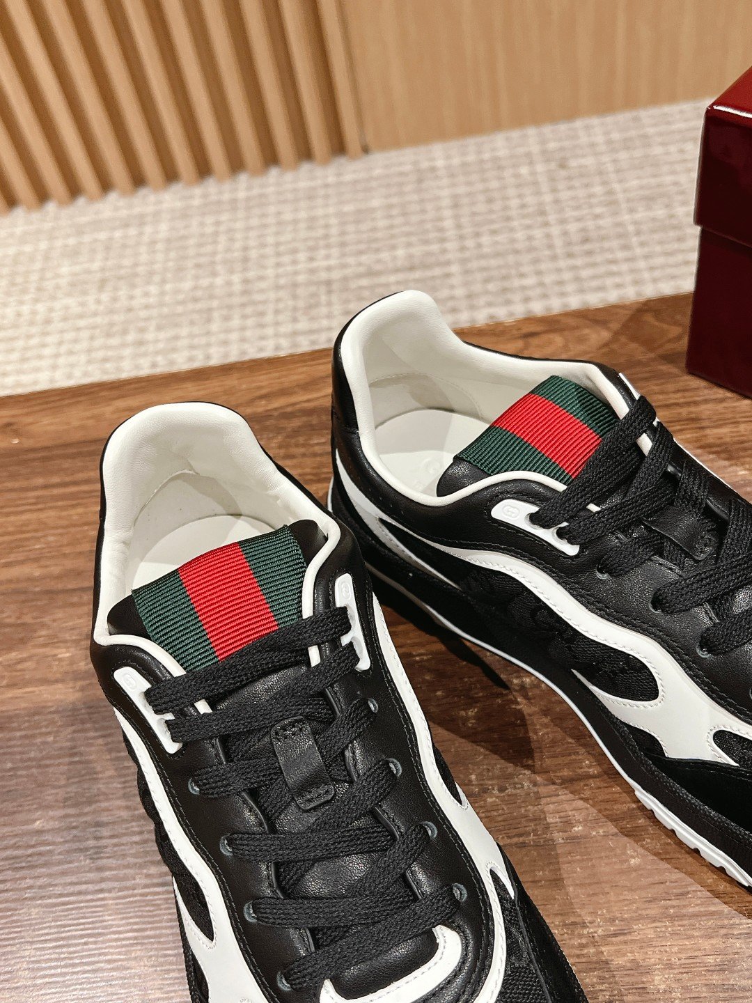 #๐๐ฎ๐๐๐ข ๐๐๐ – ๐๐ ๐ As Sabato De Sarno’s first sneaker for Gucci, the Re-Web collection reinterprets the brand’s classic stripes with bold, irreverent detailing against a modern silhouette crafted in white leather, the new sneakers are embellished with a number of the brand’s iconic details and a bright red and green lace-up tongue, making them an instant favorite. The white leather has been specially treated to be soft and supple, with an embossed grained texture