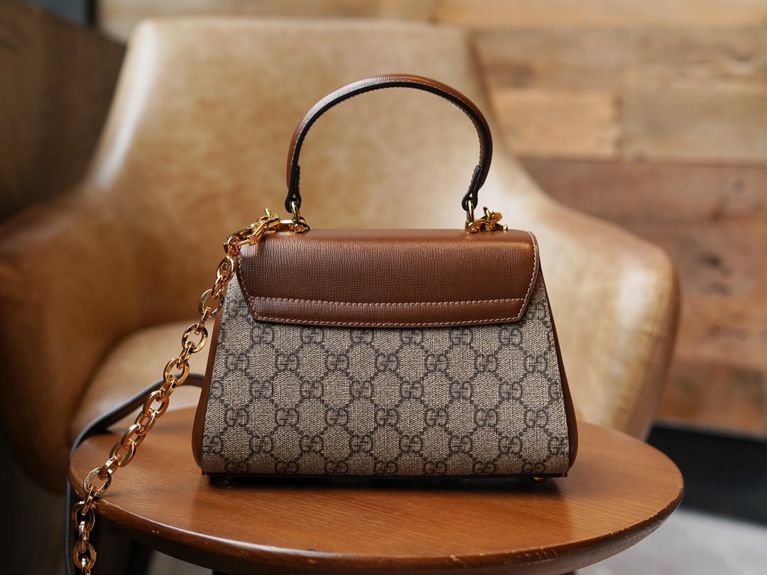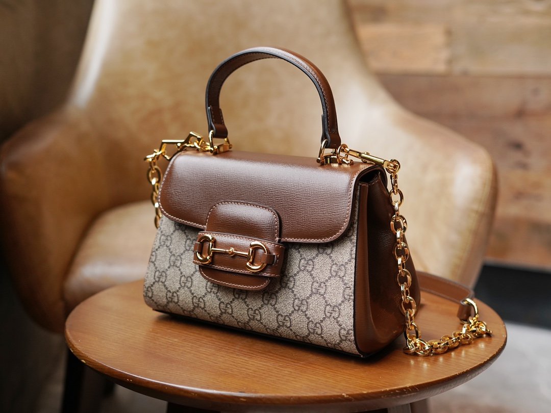Horsebit 1955 Collection Tote is presented in beige and ebony GG Supreme canvas. Inspired by the brand’s equestrian roots, the pattern consists of two elements, the double ring and the long strip, which has become one of the brand’s most recognizable signature elements. The brown leather piping adds elegance to the design.