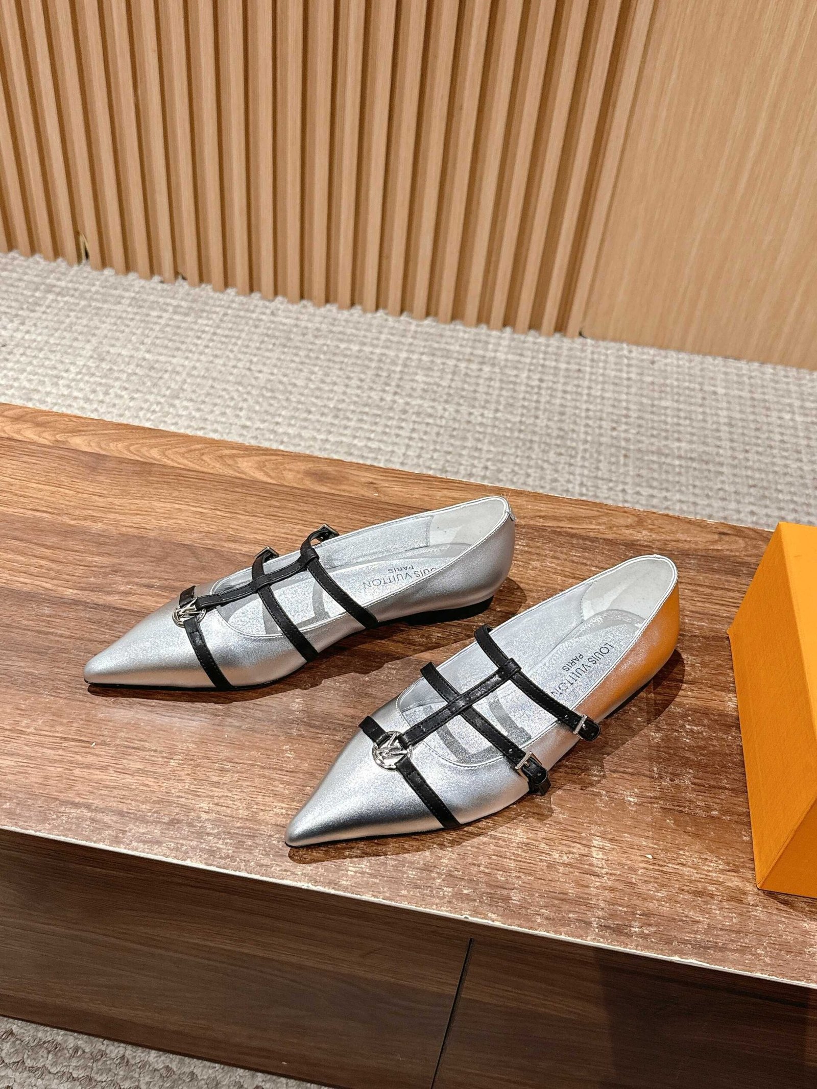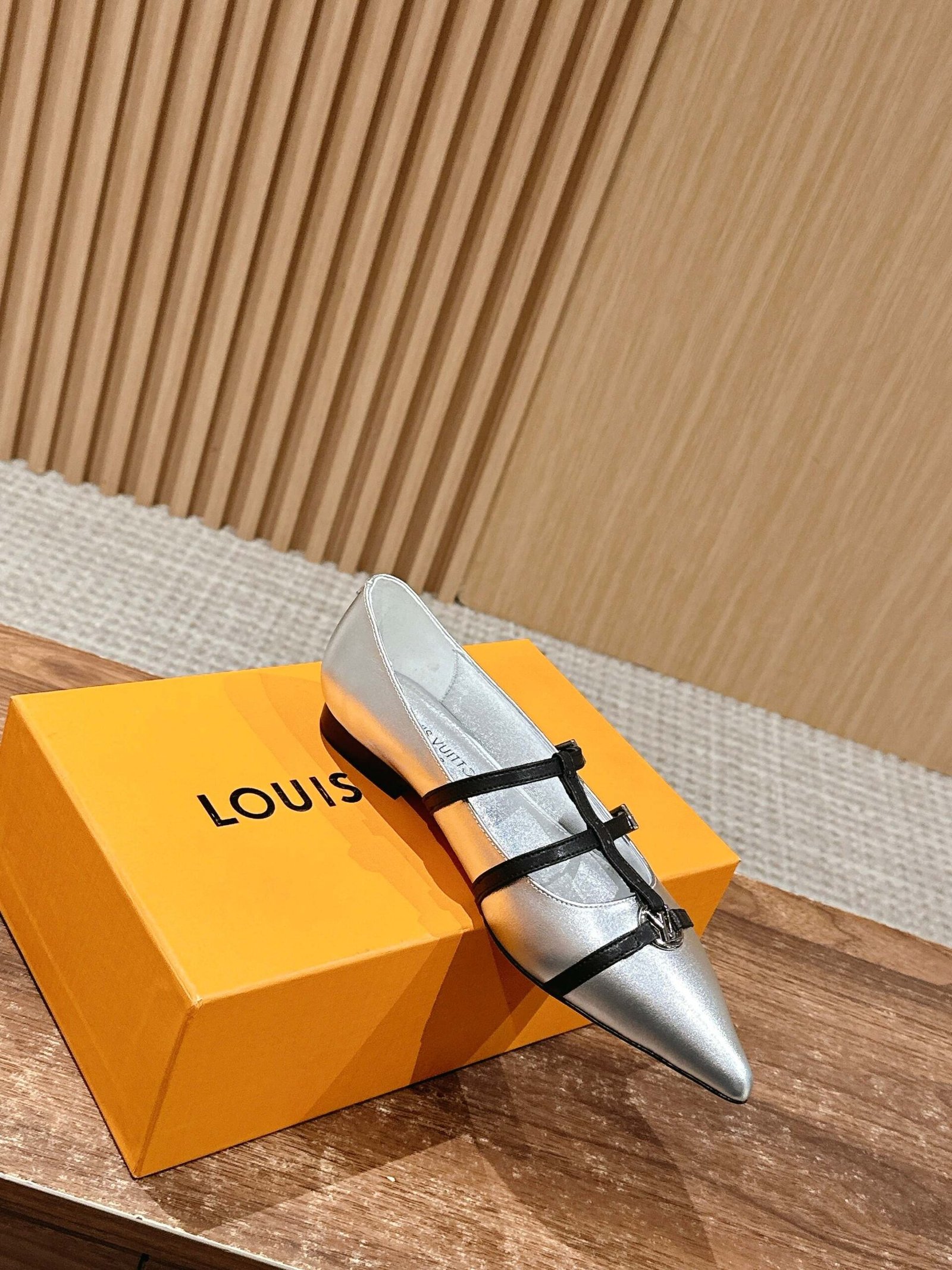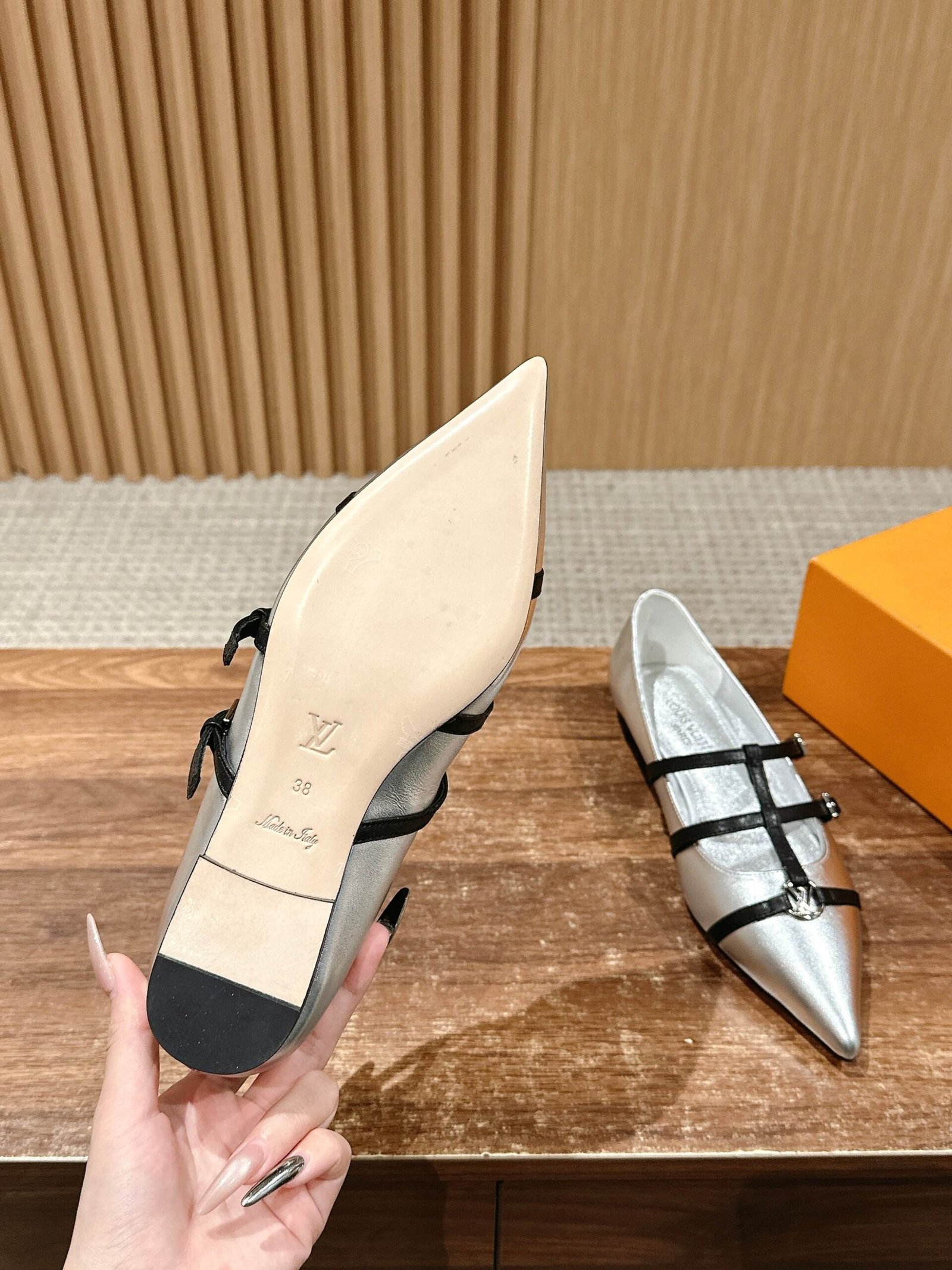 𝐋𝐨𝐮đĸđŦ 𝐕𝐮đĸ𝐭𝐭 𝐨𝐧 𝟮đŸŦ𝟮𝟱/đŦđŦ#Louis Vuitton New Spaghetti straps pointy toe cat-heeled sandal shoes single shoes metal letters buckle cowhide leather Material Sheepskin lining Leather outsole Size: 35-39 (40.41 customized non-returnable)