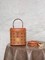 This round crossbody bag has plenty of room ๐ฏ is designed with a geometric construction and is adorned with a Visetos classic print and a vintage gold tone logo. plaque, two of the brand’s signature elements. The top of the bag is made from Nappa leather with a two-way zipper closure to keep your belongings safe and secure, and an expandable fabric-lined interior to store your valuables. Carry the bag by its leather top handle or use the included shoulder strap for mobility.
