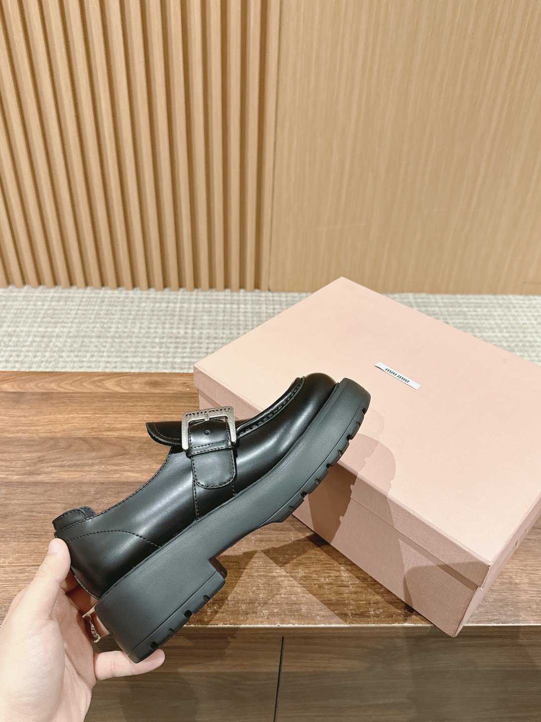 ๐Œ๐ˆ๐”๐Œ๐ˆ๐”# Miu Miu Thick Bottomed Mary Jane Loafers n Specific Cowhide Open Edge Beads, rounded and cute shape, with large large hardware fasteners, cute plus points Exclusive open molded outsole There are certain Thickness, comfortable feet, heightening effect full Size: 35-39 (40 customized non-returnable)