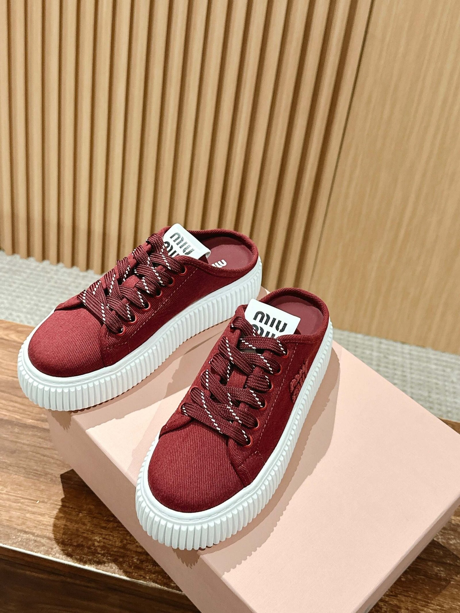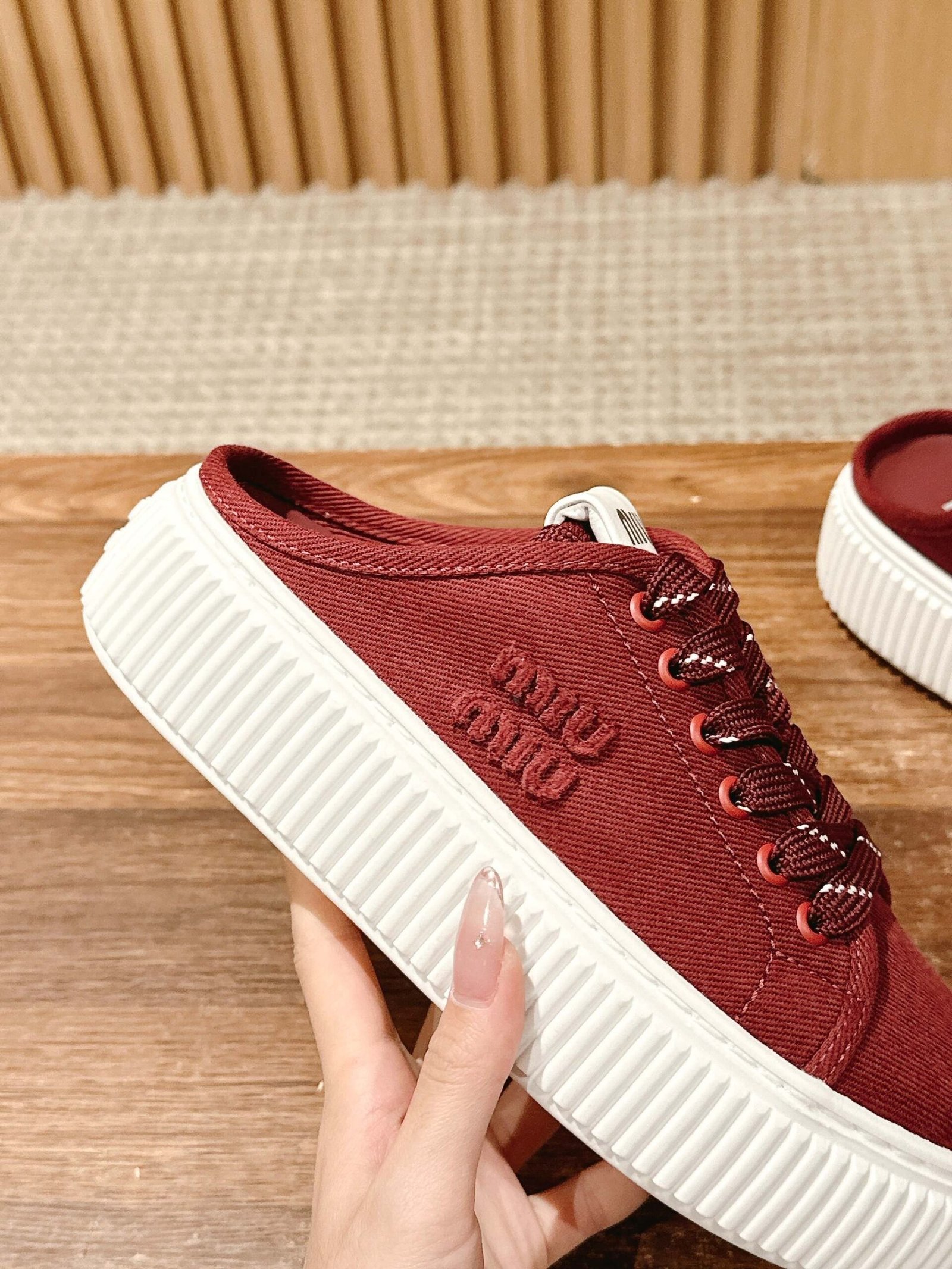 ๐Œ๐ˆ๐” ๐Œ๐ˆ๐” ๐Ÿฎ๐Ÿฌ๐Ÿฎ๐Ÿฑ /๐ฌ๐ฌ Miu new muffin thick bottom casual white shoes canvas shoes Baotou half drag cookie shoes