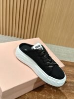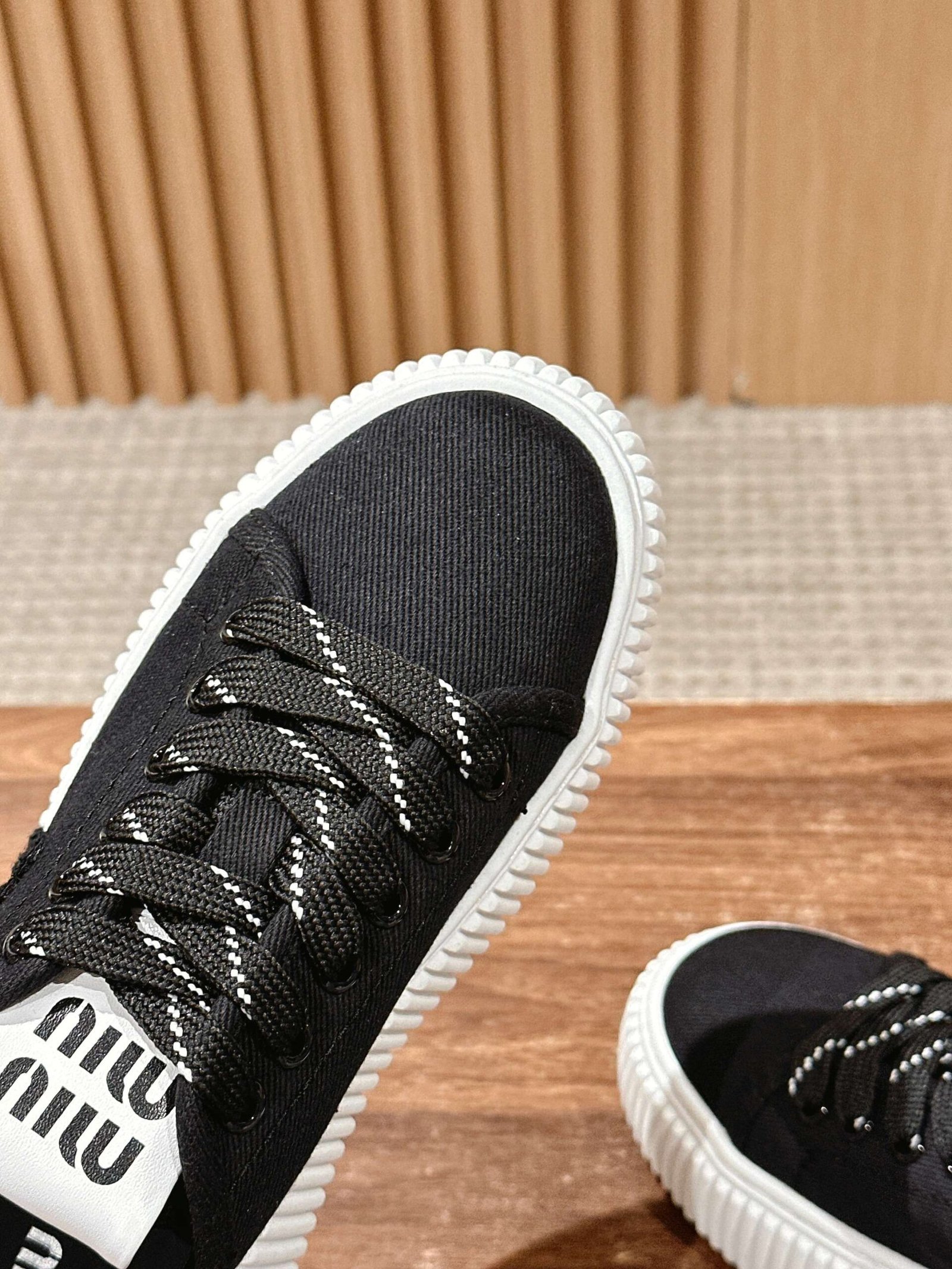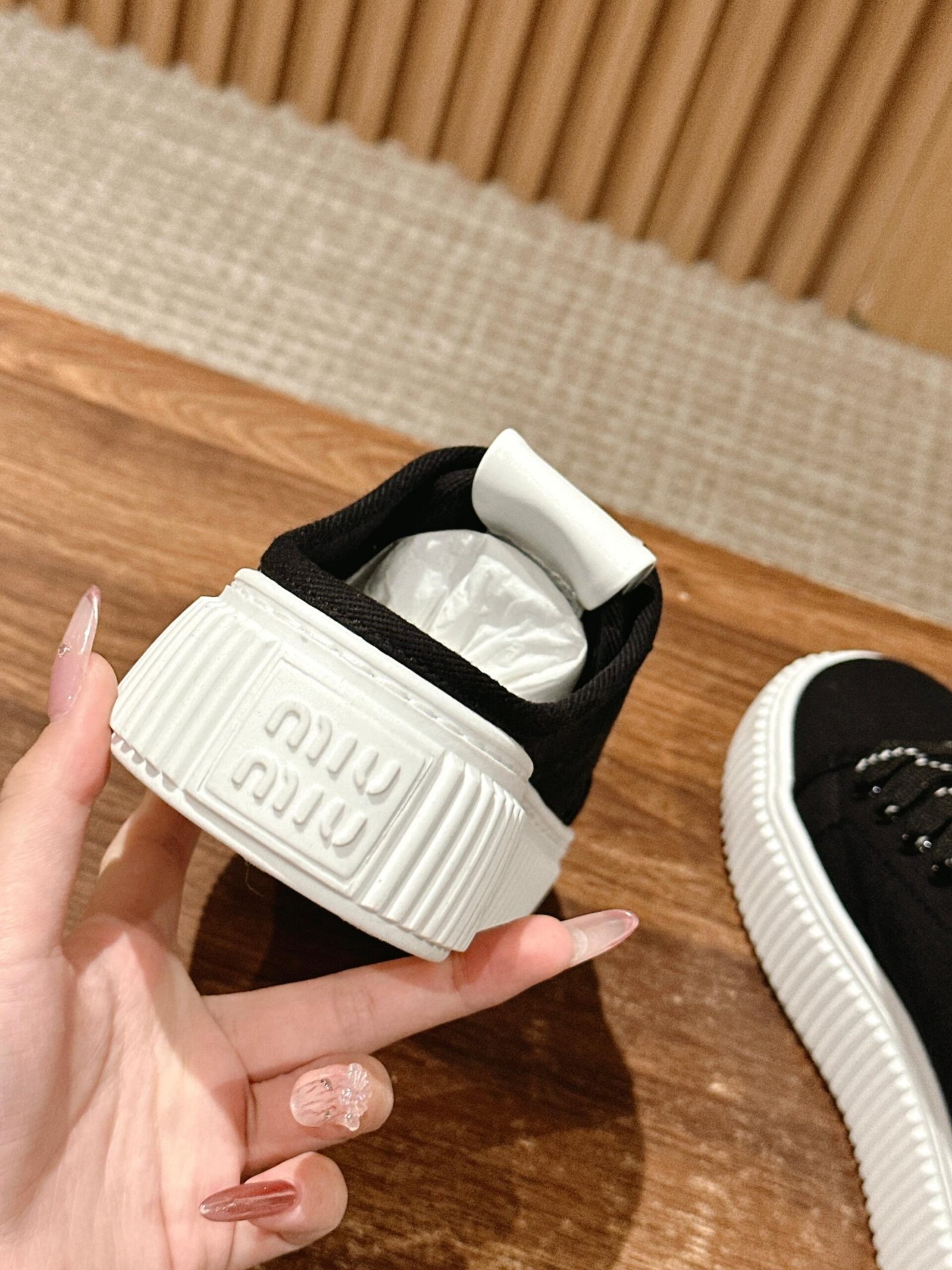 ๐Œ๐ข๐ฎ ๐Œ๐ข๐ฎ ๐Ÿฎ๐Ÿฌ๐Ÿฎ๐Ÿฑ /๐ฌ๐ฌ#Miu Miu Spring/Summer New Biscuit Shoes Forrest Gump Shoes Casual Sneakers nnmiumiu’s newest explosion Avant-garde and bold design, the Miu Miu style is fused into the simple lines of this thick-soled canvas sneaker,nn chic logo adorned on the tongue and the back, embellished with a vintage design, adding an iconic element! Thick sole design defines the avant-garde modern stylennFabric: Original customized fabric/cow suede Lining: Original imported soft lamb’s wool Sole: Original molded non-slip rubber outsolennSole thickness: approx. 4.5cmnnSize: 35-40 (40 customized non-returnable)