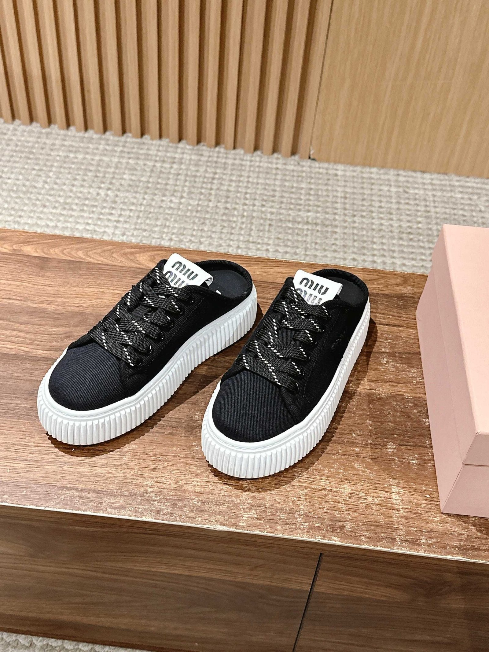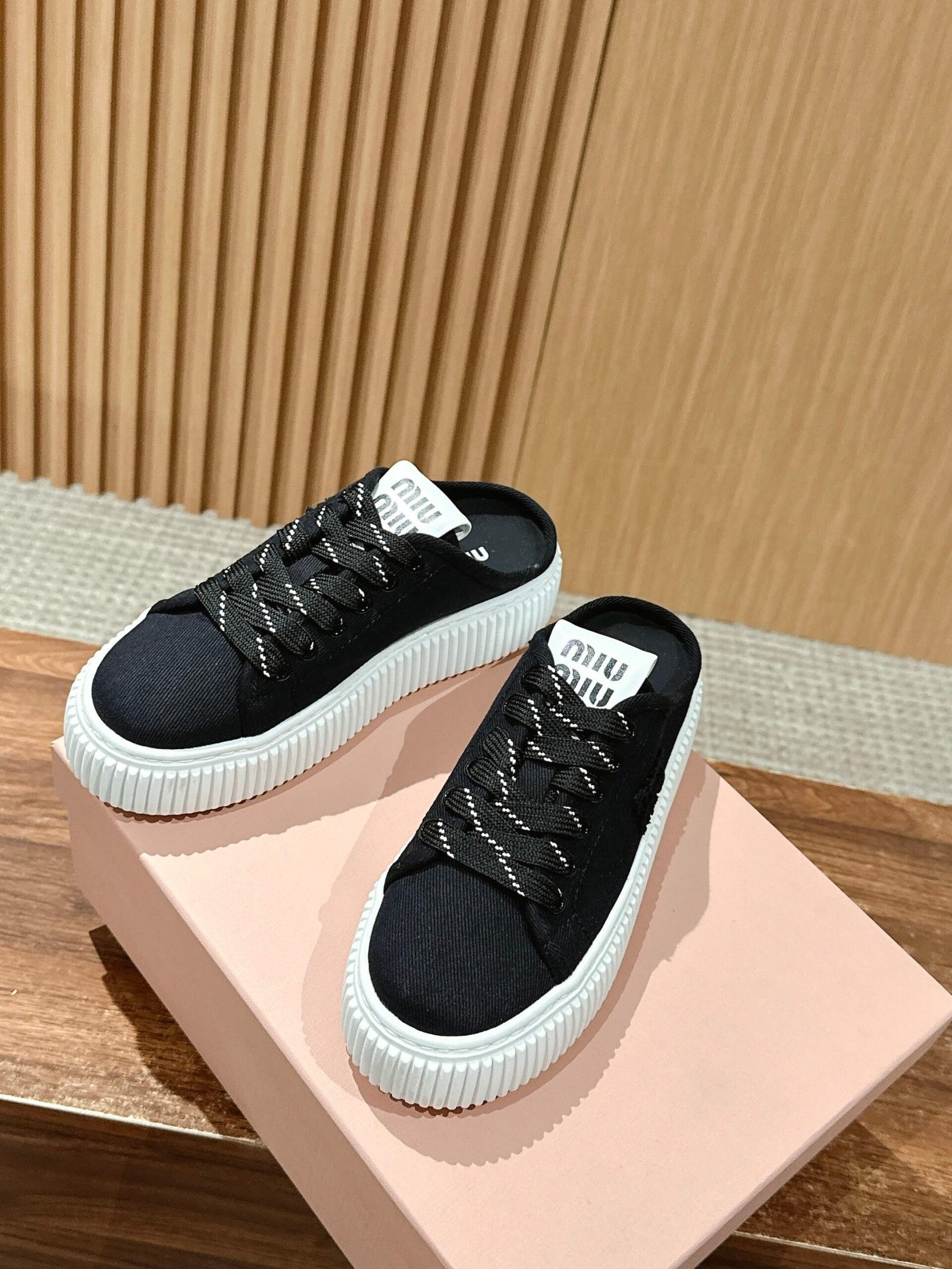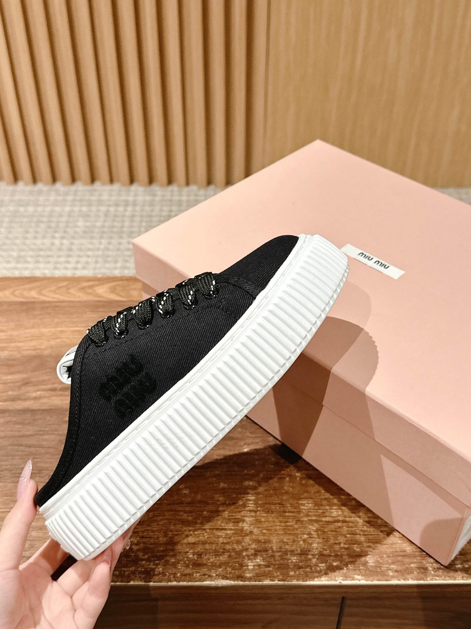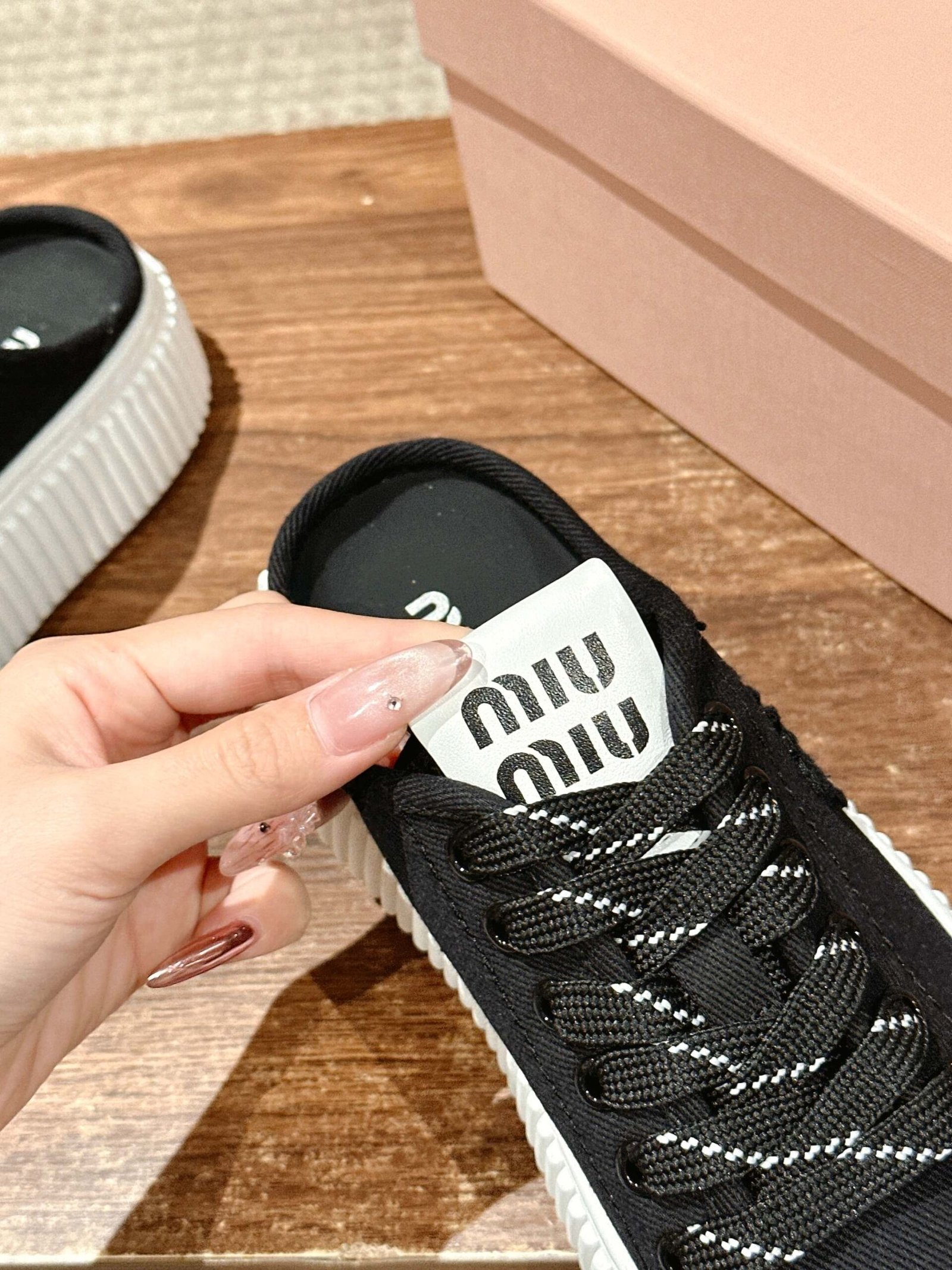 ๐Œ๐ˆ๐” ๐Œ๐ˆ๐” ๐Ÿฎ๐Ÿฌ๐Ÿฎ๐Ÿฑ /๐ฌ๐ฌ Miu new muffin thick bottom casual white shoes canvas shoes Baotou half drag cookie shoes