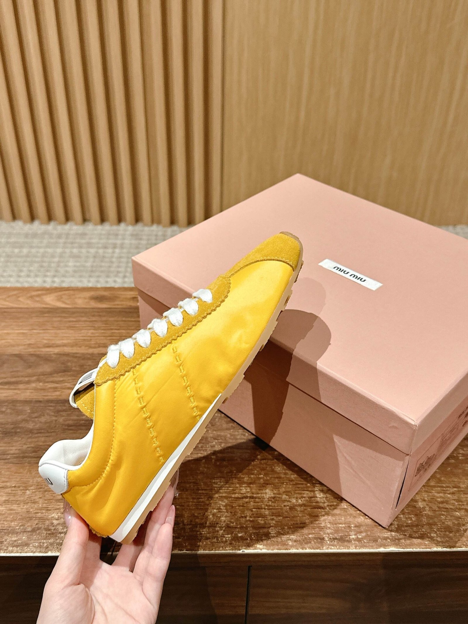 ๐Œ๐ข๐ฎ ๐Œ๐ข๐ฎ ๐Ÿฎ๐Ÿฌ๐Ÿฎ๐Ÿฑ /๐ฌ๐ฌ#Miu Miu Spring/Summer New Biscuit Shoes Forrest Gump Shoes Casual Sneakers nnmiumiu’s newest explosion Avant-garde and bold design, the Miu Miu style is fused into the simple lines of this thick-soled canvas sneaker,nn chic logo adorned on the tongue and the back, embellished with a vintage design, adding an iconic element! Thick sole design defines the avant-garde modern stylennFabric: Original customized fabric/cow suede Lining: Original imported soft lamb’s wool Sole: Original molded non-slip rubber outsolennSole thickness: approx. 4.5cmnnSize: 35-40 (40 customized non-returnable)