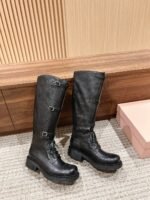 缪缪秋冬走秀款 机车风复古长靴 酷飒酷飒的 延续了爆款风格 经典机车靴造型帅气摩登 鞋面 植糅小牛皮质感超好 牛皮里 定制真皮大底 Size定制不退换