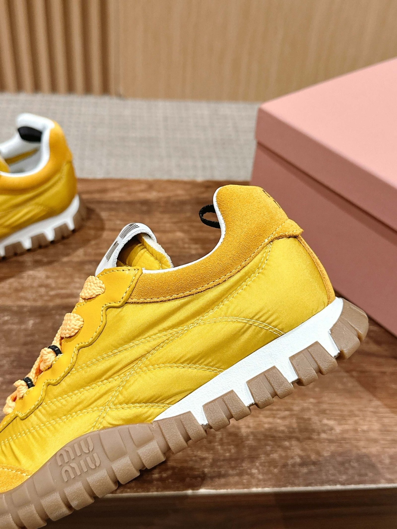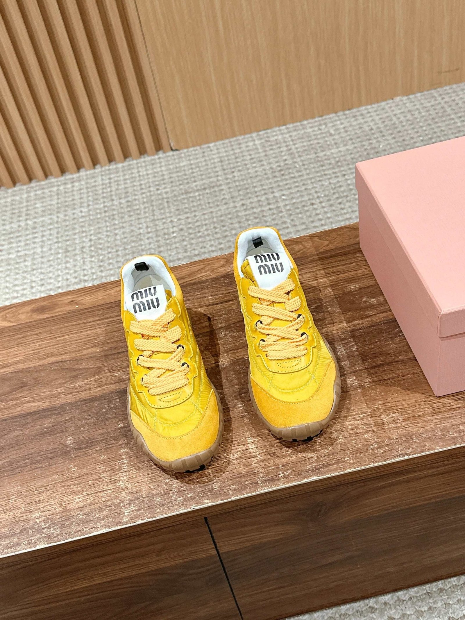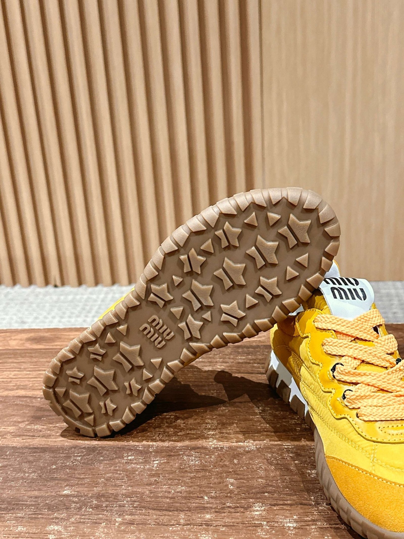 缪缪走秀款系带春夏新款阿甘休闲运动鞋nn以精致设计与现代美学碰撞演绎女性自信与优雅无论是日常穿搭还是特别场合都能为你增添一抹灵动与魅力nn 细腻的系带设计不仅为双脚带来舒适贴合更赋予鞋履独特的时尚感nn延续品牌经典元素同时注入现代潮流灵感无论是皮革绒面还是独特材质都为你带来与众不同的穿着体验n 轻盈的鞋底与舒适的鞋型让你在行走间感受自由与灵动系带设计不仅美观更贴合脚型陪你轻松应对每一天的精彩时刻n 从简约到华丽MIU MIU 新款系带女鞋满足多样风格需求无论是搭配裙装还是裤装都能成为你造型中的点睛之笔n n最新爆款 前卫大胆的设计Miu Miu风格融于此款厚底帆布运动鞋的简约线条别致徽标饰于鞋舌与背面点缀复古设计平添标志性元素厚底设计定义前卫的现代风格n面料原版定制布料牛反绒 n内里原版进口柔软羊皮n鞋底原版开模防滑橡胶大底 n尺码定做不退换