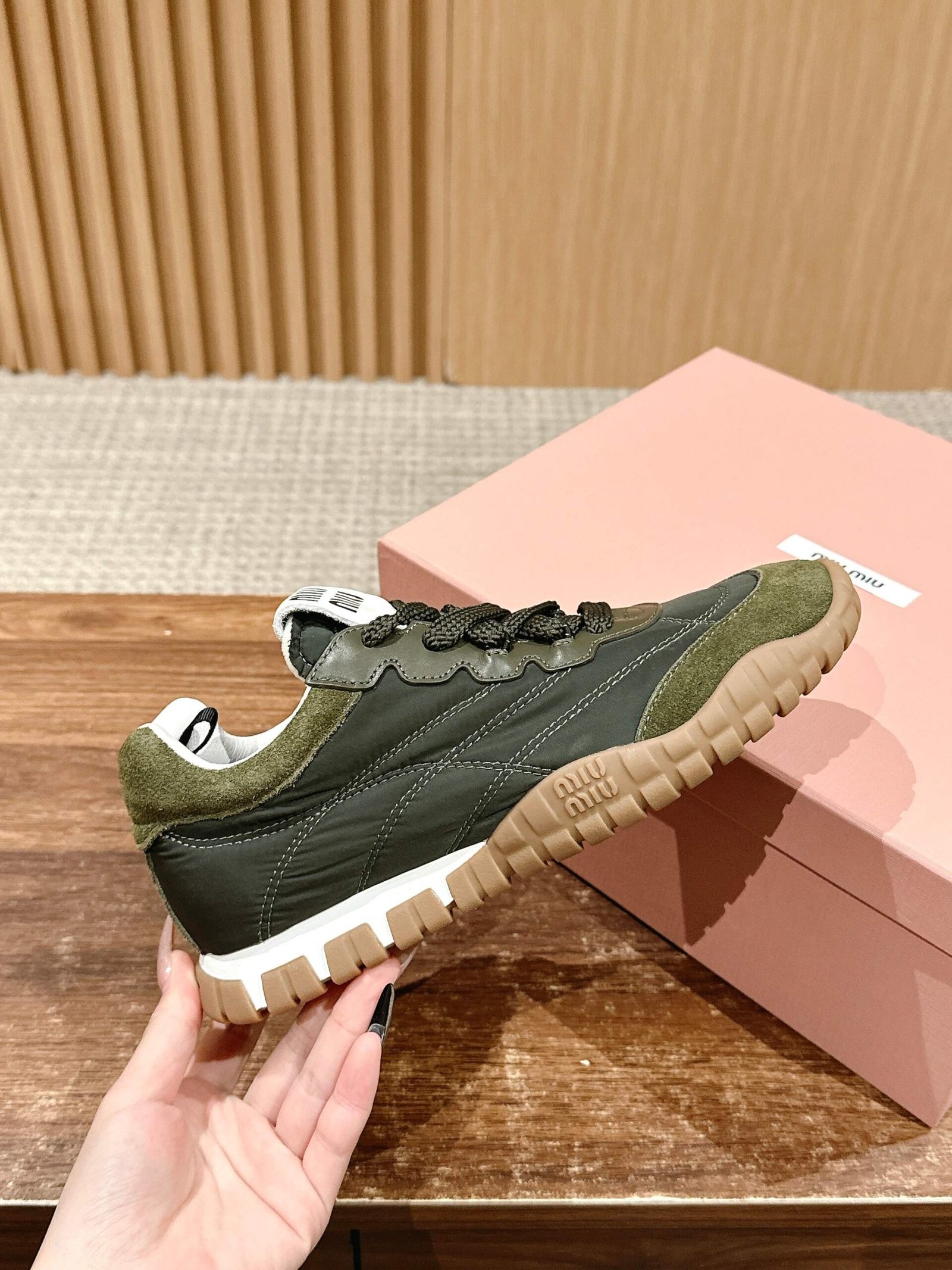 The latest explosion of avant-garde and bold design, the style of Miu Miu blended into the thick canvas shoes, the simple lines of sports shoes, not to mention the simple lines of the canvas shoes. Miu Miu’s style blends into the simple lines of these chunky canvas sneakers, with chic logos on the tongue and back, and vintage accents that add a signature element! Thick sole design defines the avant-garde modern style