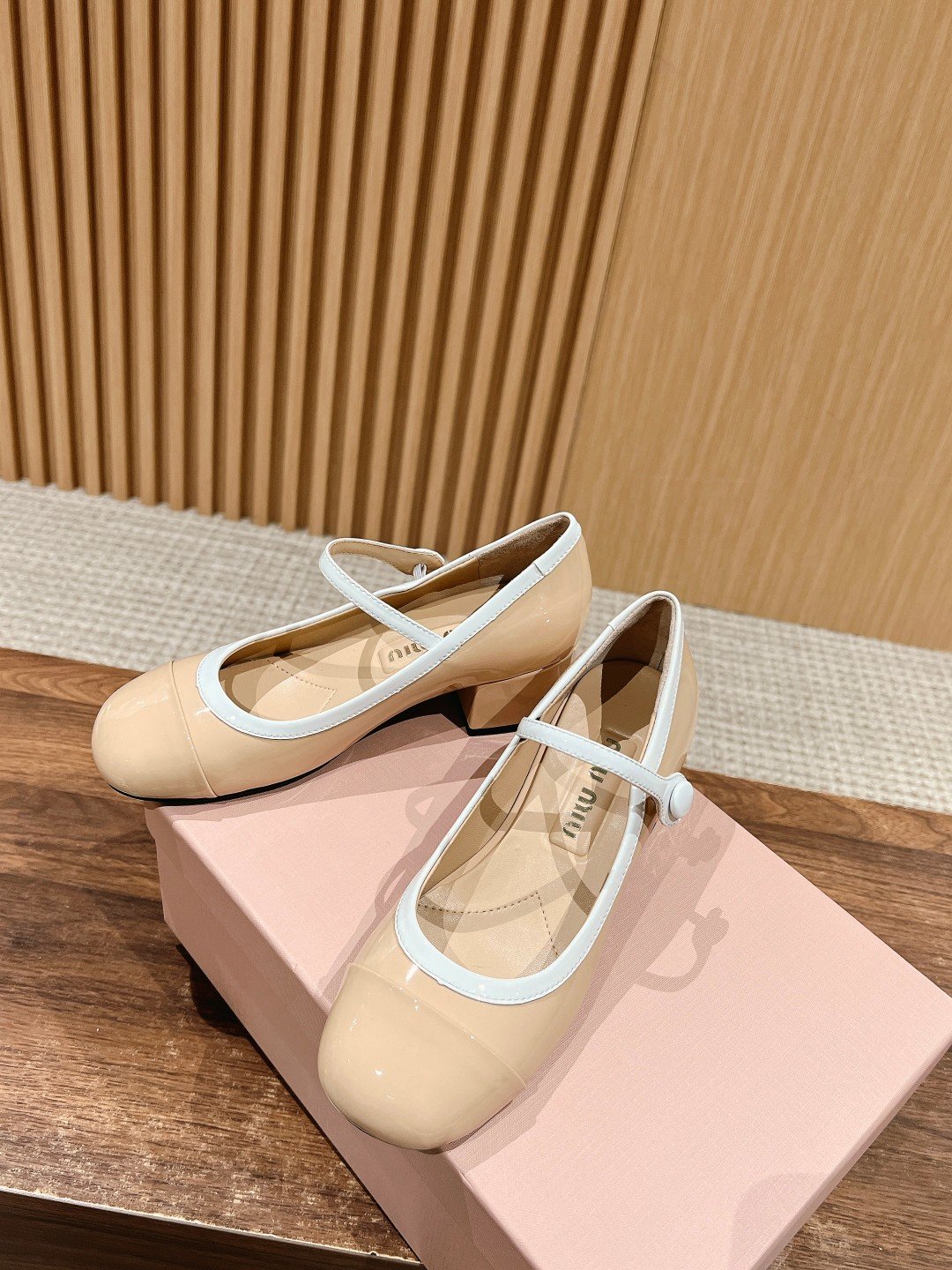 𝐌𝐈𝐔 𝐌𝐈𝐔#MuMu 2025 Early Spring New Colorblocking Mary Jane Single Shoes nn On the foot is really even more stunning ~ very versatile, and the height is too good for me, wearing not tired feet! Definitely get into a pair of no loss! nnSpecific cow patent leather material sheepskin lining leather outsolennSize: 35-40 (40 customized non-returnable)