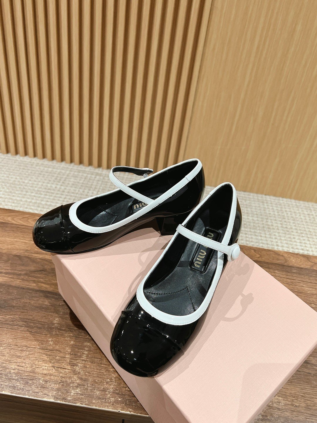 𝐌𝐈𝐔 𝐌𝐈𝐔#MuMu 2025 Early Spring New Colorblocking Mary Jane Single Shoes nn On the foot is really even more stunning ~ very versatile, and the height is too good for me, wearing not tired feet! Definitely get into a pair of no loss! nnSpecific cow patent leather material sheepskin lining leather outsolennSize: 35-40 (40 customized non-returnable)