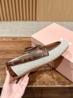 𝐌𝐢𝐮 𝐌𝐢𝐮 𝟮𝟬𝟮𝟱 /𝐬𝐬 Miu Miu spring and summer brogue ballet Loafers nnThis brogue shoes line simple design classic, decorated with Miu Miu logo and other metal detailsnAdvanced sense of texture old money wind pull full of the female high aging college style on the foot is too good looking ah Close your eyes into the various outfits can be handled versatile and comfortable Upper Cowhide splicing canvasnnn Upper: cowhide and original molded fabric patchwork n Lining: sheepskin n Outsole: rubber outsole nnSize: 35-40 (40 customized non-returnable) $230.00