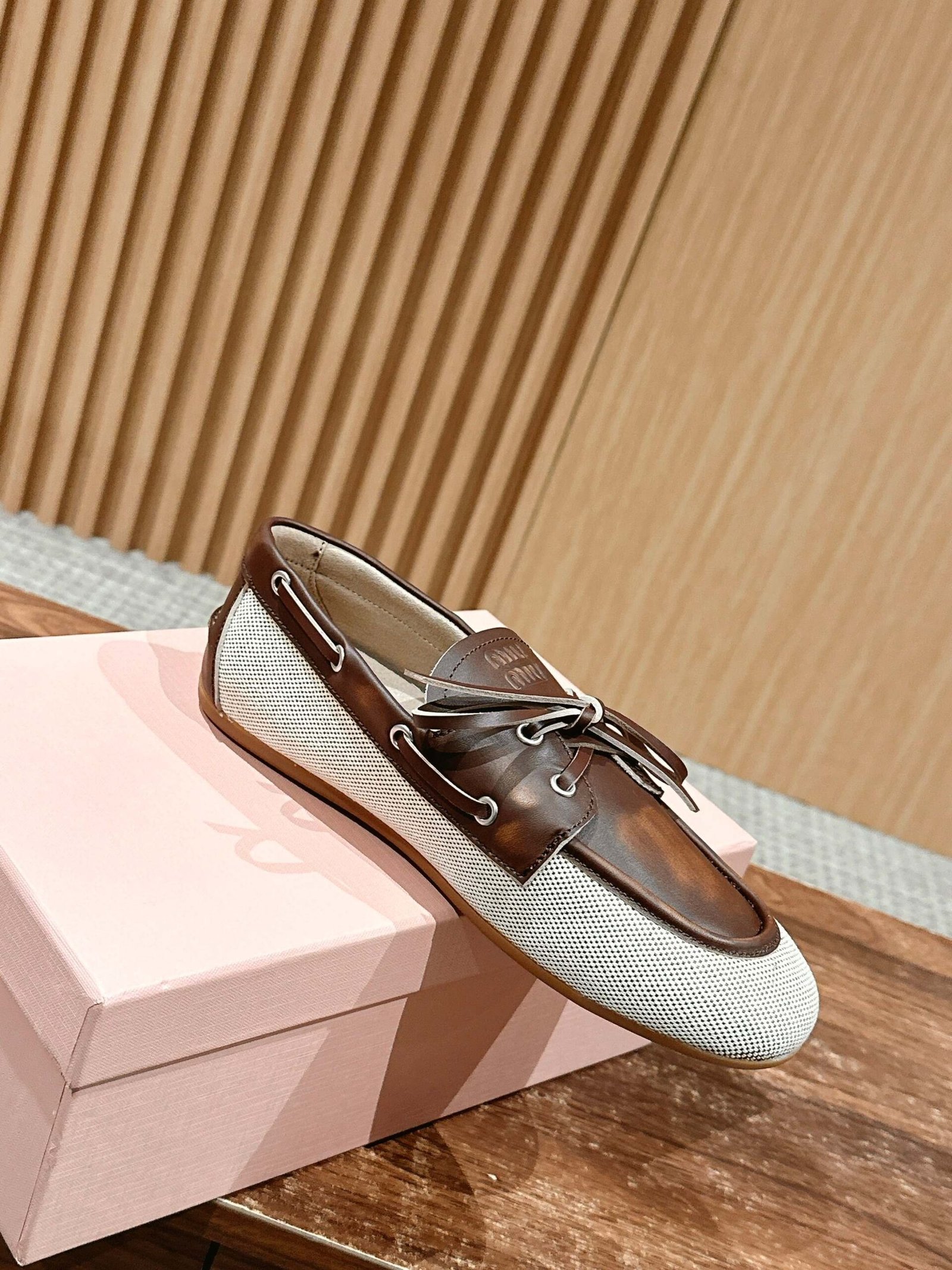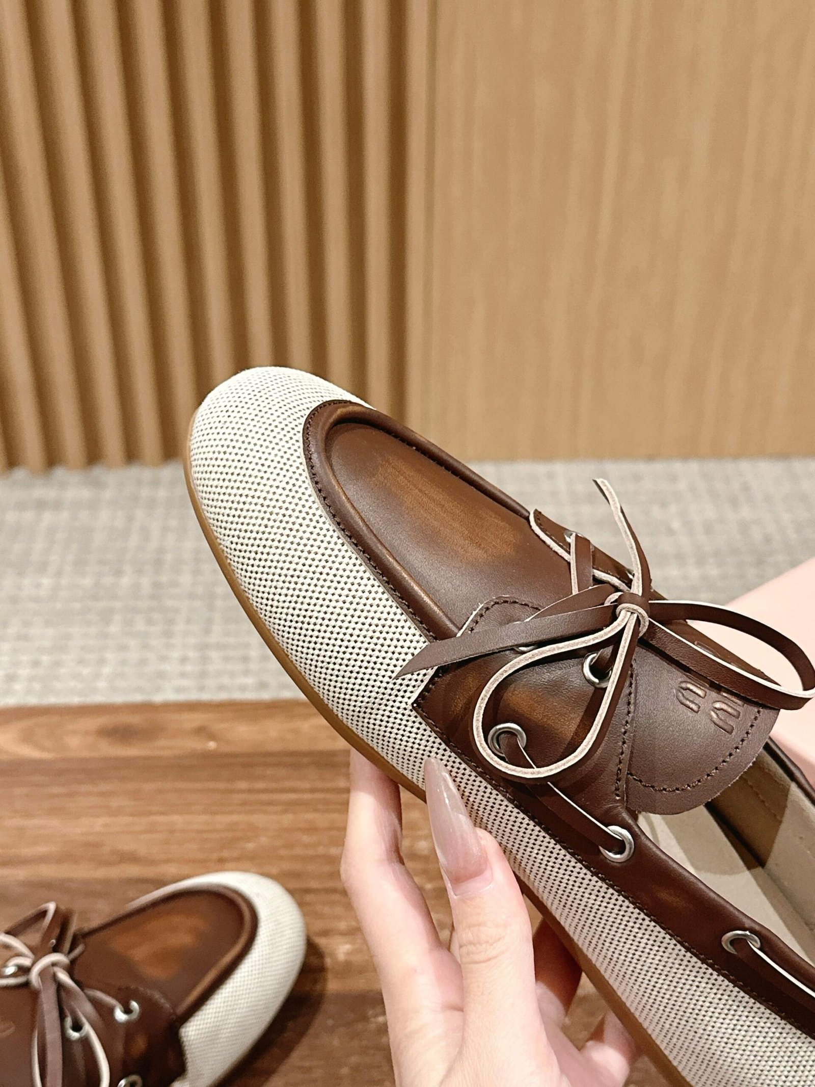 Home SHOES MIUMIU 𝐌𝐢𝐮 𝐌𝐢𝐮 𝟮𝟬𝟮𝟱 /𝐬𝐬 Miu Miu spring and summer brogue ballet Loafers nnThis brogue shoes line simple design classic, decorated with Miu Miu logo and other metal detailsnAdvanced sense of texture old money wind pull full of the female high aging college style on the foot is too good looking ah Close your eyes into the various outfits can be handled versatile and comfortable Upper Cowhide splicing canvasnnn Upper: cowhide and original molded fabric patchwork n Lining: sheepskin n Outsole: rubber outsole nnSize: 35-40 (40 customized non-returnable)