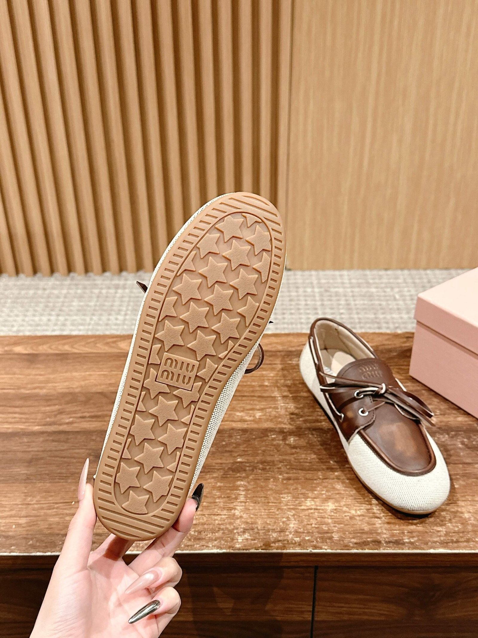 𝐌𝐢𝐮 𝐌𝐢𝐮 𝟮𝟬𝟮𝟱 /𝐬𝐬 Miu Miu spring and summer brogue ballet Loafers nnThis brogue shoes line simple design classic, decorated with Miu Miu logo and other metal detailsnAdvanced sense of texture old money wind pull full of the female high aging college style on the foot is too good looking ah Close your eyes into the various outfits can be handled versatile and comfortable Upper Cowhide splicing canvasnnn Upper: cowhide and original molded fabric patchwork n Lining: sheepskin n Outsole: rubber outsole nnSize: 35-40 (40 customized non-returnable) $230.00