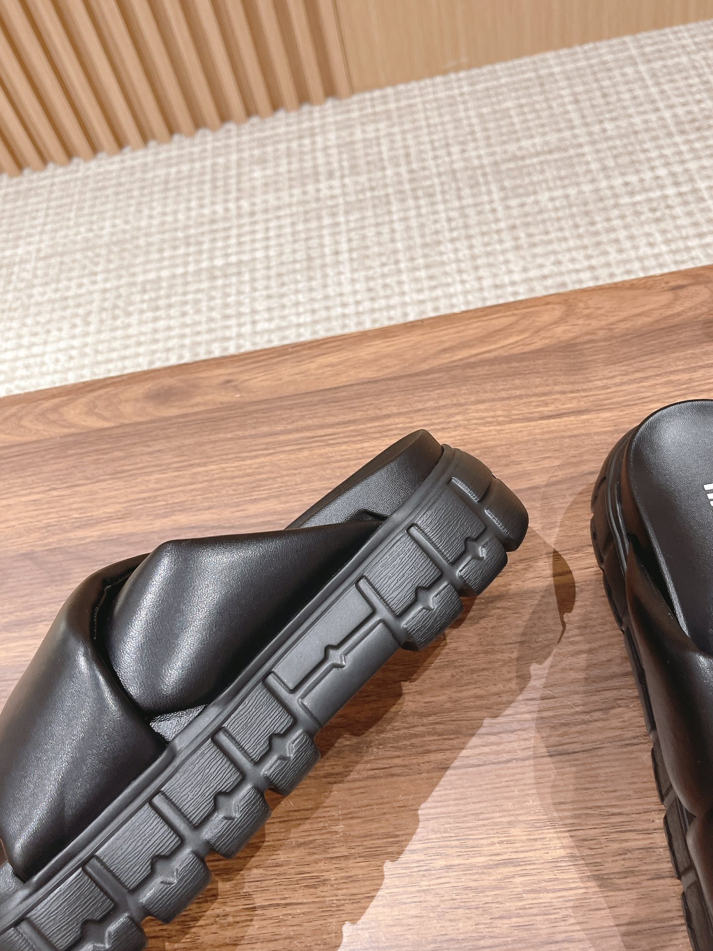 [Flat Heel] 𝐌𝐢𝐮 𝐌𝐢𝐮# Miu Miu New Pleated Cat Heel Drags n Let you walk can also be beautiful to the heart!!!! The design is very simple and atmospheric, without too much decoration and fancy design, but it comes with an elegant temperament, with a very strong ability to match, whether it is a skirt, pants or jeans, can easily match with different styles, so that you become a fashion icon!!!nnFull sheepskin made of soft and breathable leather sole nSize: 35-39 (40 customized non-returnable)