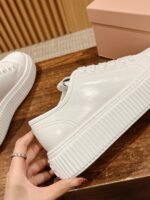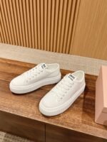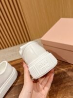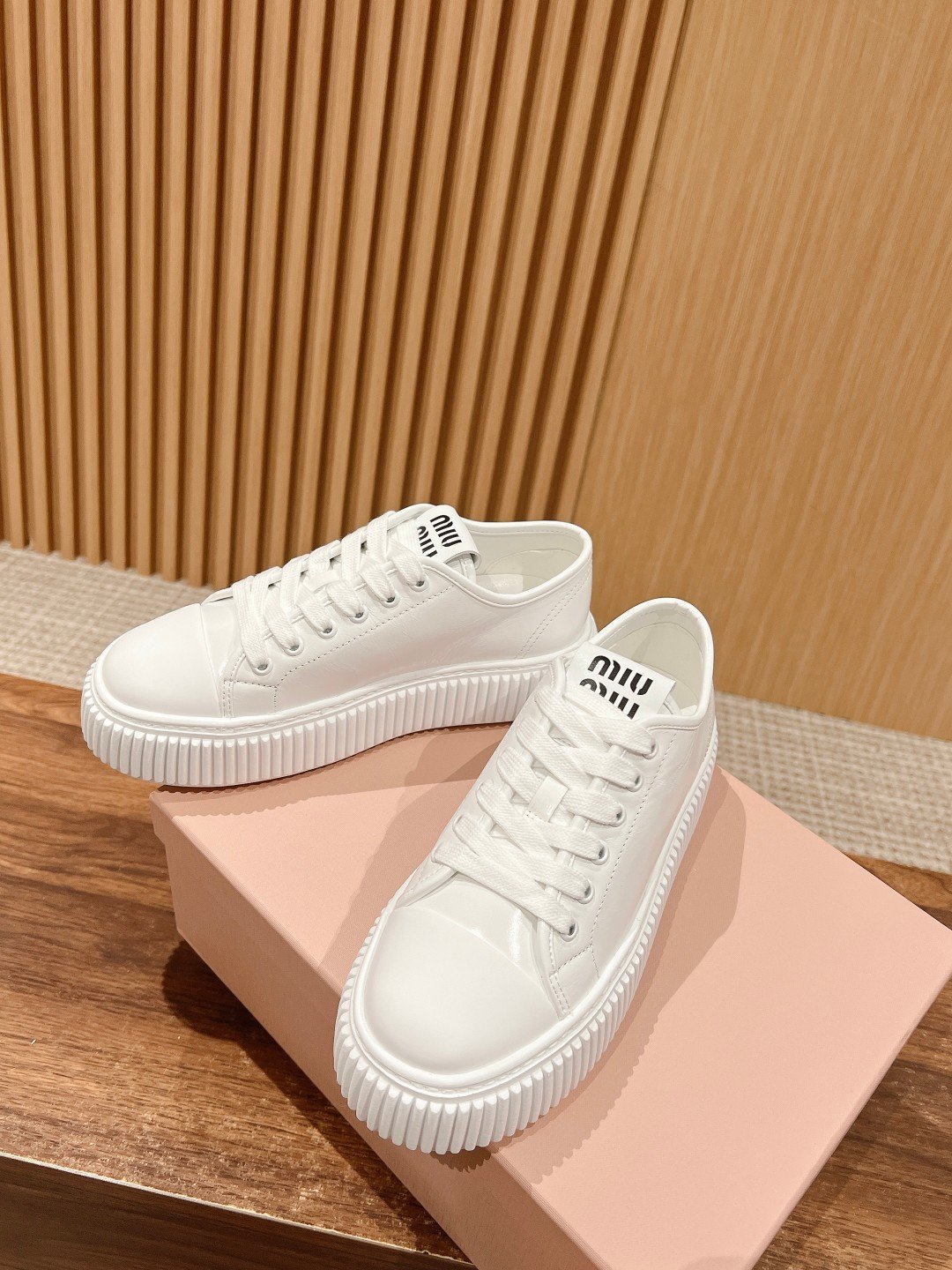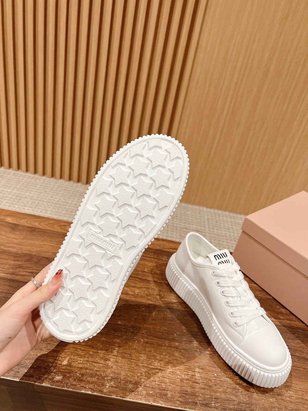 𝐌𝐢𝐮 𝐌𝐢𝐮 𝟮𝟬𝟮𝟱 /𝐬𝐬#Miu Miu Spring/Summer New Biscuit Shoes Forrest Gump Shoes Casual Sneakers nnmiumiu’s newest explosion Avant-garde and bold design, the Miu Miu style is fused into the simple lines of this thick-soled canvas sneaker,nn chic logo adorned on the tongue and the back, embellished with a vintage design, adding an iconic element! Thick sole design defines the avant-garde modern stylennFabric: Original customized fabric/cow suede Lining: Original imported soft lamb’s wool Sole: Original molded non-slip rubber outsolennSole thickness: approx. 4.5cmnnSize: 35-40 (40 customized non-returnable)