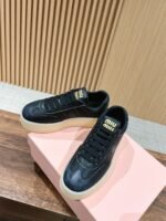 𝐌𝐢𝐮 𝐌𝐢𝐮 𝟮𝟬𝟮𝟱 /𝐬𝐬#Miu Miu Spring/Summer New Biscuit Shoes Forrest Gump Shoes Casual Sneakers nnmiumiu’s newest explosion Avant-garde and bold design, the Miu Miu style is fused into the simple lines of this thick-soled canvas sneaker,nn chic logo adorned on the tongue and the back, embellished with a vintage design, adding an iconic element! Thick sole design defines the avant-garde modern stylennFabric: Original customized fabric/cow suede Lining: Original imported soft lamb’s wool Sole: Original molded non-slip rubber outsolennSole thickness: approx. 4.5cmnnSize: 35-40 (40 customized non-returnable)