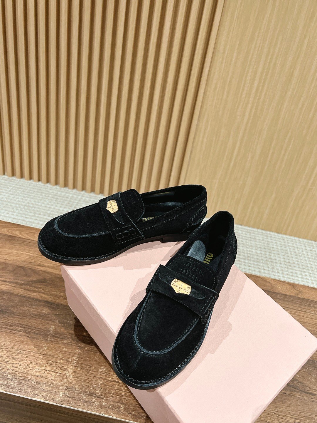 缪缪经典款钱币乐福鞋nn缪缪这一款也太美了吧无敌搭配怎么穿都超级好看钱币的设计很复古很时尚nn皮边全部细节油边处理原版开模橡胶大底原版开模钱币五金铜扣nn原版定制牛皮材质羊皮内里 nSize定做不退换