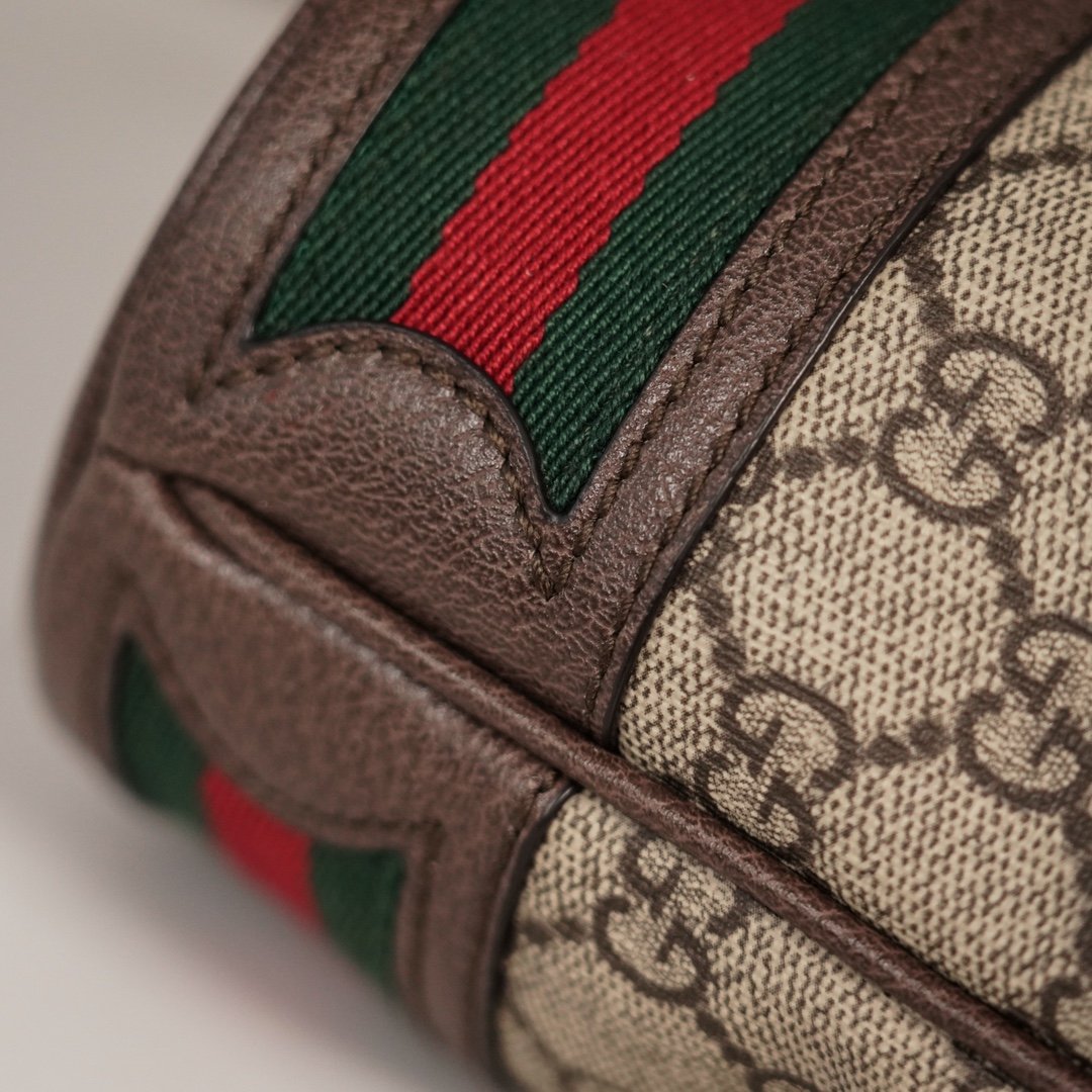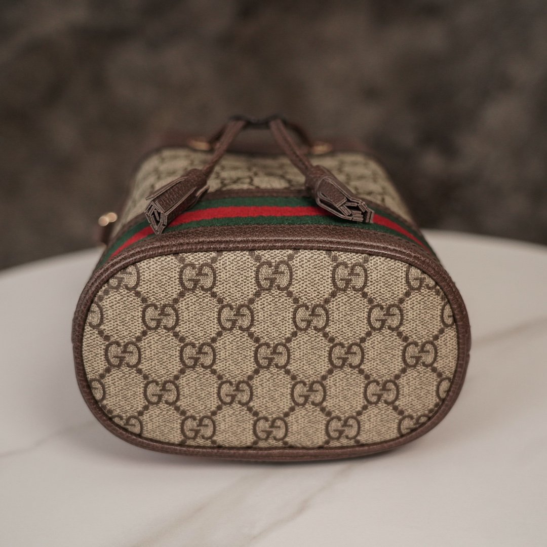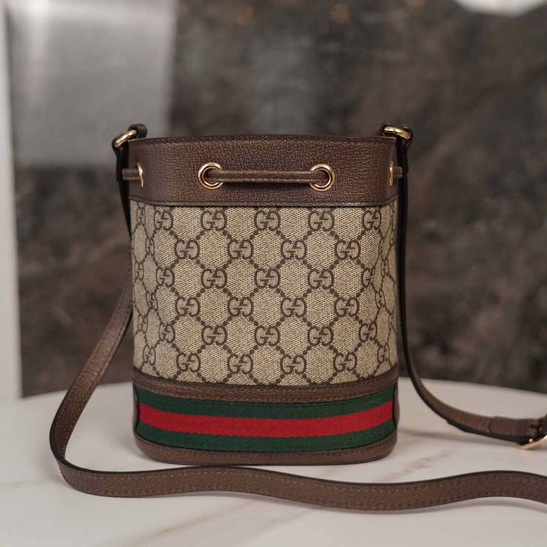 Home BAGS GUCCI 𝐎𝐩𝐡𝐢𝐝𝐢𝐚 Collection Mini 𝐆𝐆𝐆 Bucket Bag Old Flower n A classic from the nOphidia collection – the Mini Bucket Bag. Crafted from GG Supreme canvas, this accessory features a red and green striped webbing inlay on the bottom and an adjustable shoulder strap. With its historical roots, canvas has been used in several collections and has become an iconic material for the brand. nSize: 15.5*19*9cmnModel No.: 550620