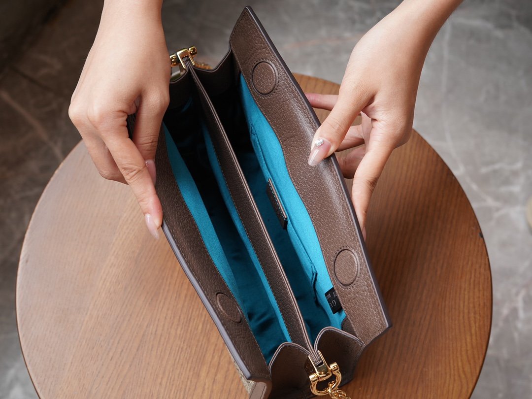 𝐎𝐩𝐡𝐢𝐝𝐢𝐚 Collection Small Envelope Bag Oatmeal nnGG Supreme canvas is one of the brand's classic fabrics, which has been refined by different With different color combinations and modern and classic design interpretations, it makes a splash in the new Love March fashion collection. The Ophidia shoulder bag is an interpretation of the iconic fabric in beige and white with matching piping. Inspired by the 1930s, the canvas echoes the collection's stylish retro design concept. nSize: 26*17.5*8cmnModel No.: 503877