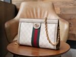 GG Supreme canvas is one of the brand’s classic fabrics, which has been refined by different With different color combinations and modern and classic design interpretations, it makes a splash in the new Love March fashion collection. The Ophidia shoulder bag is an interpretation of the iconic fabric in beige and white with matching piping. Inspired by the 1930s, the canvas echoes the collection’s stylish retro design concept.