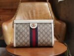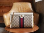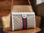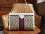 Ophidia Collection in Aria – Fashion Aria The Ophidia collection has been revitalized in the Aria collection, with vintage-inspired details echoing classic brand elements. Crafted from beige and ebony GG Supreme canvas, this small shoulder bag is trimmed with classic white leather piping and red and blue striped webbing appliqués. The vintage-inspired stiletto shape is finished with a chain strap and double G hardware.
