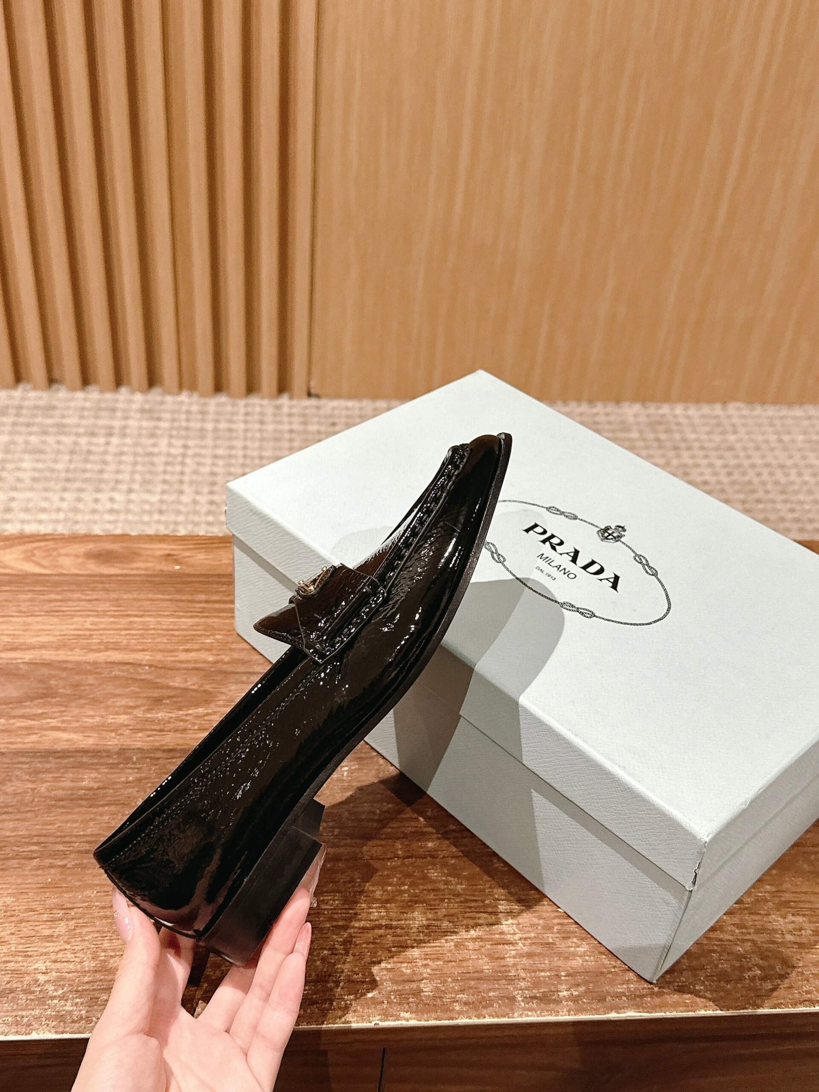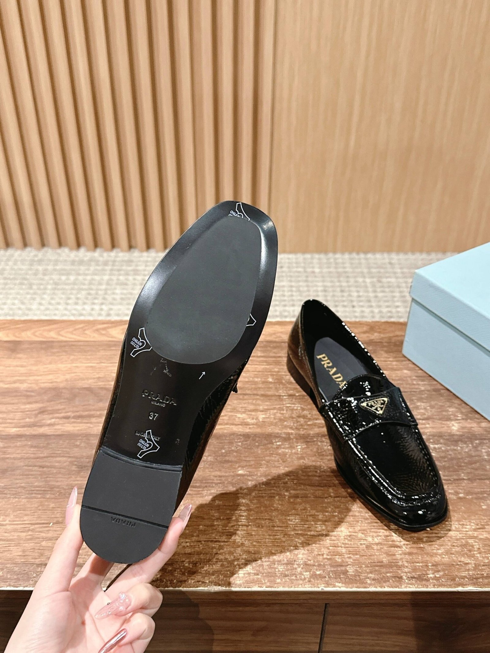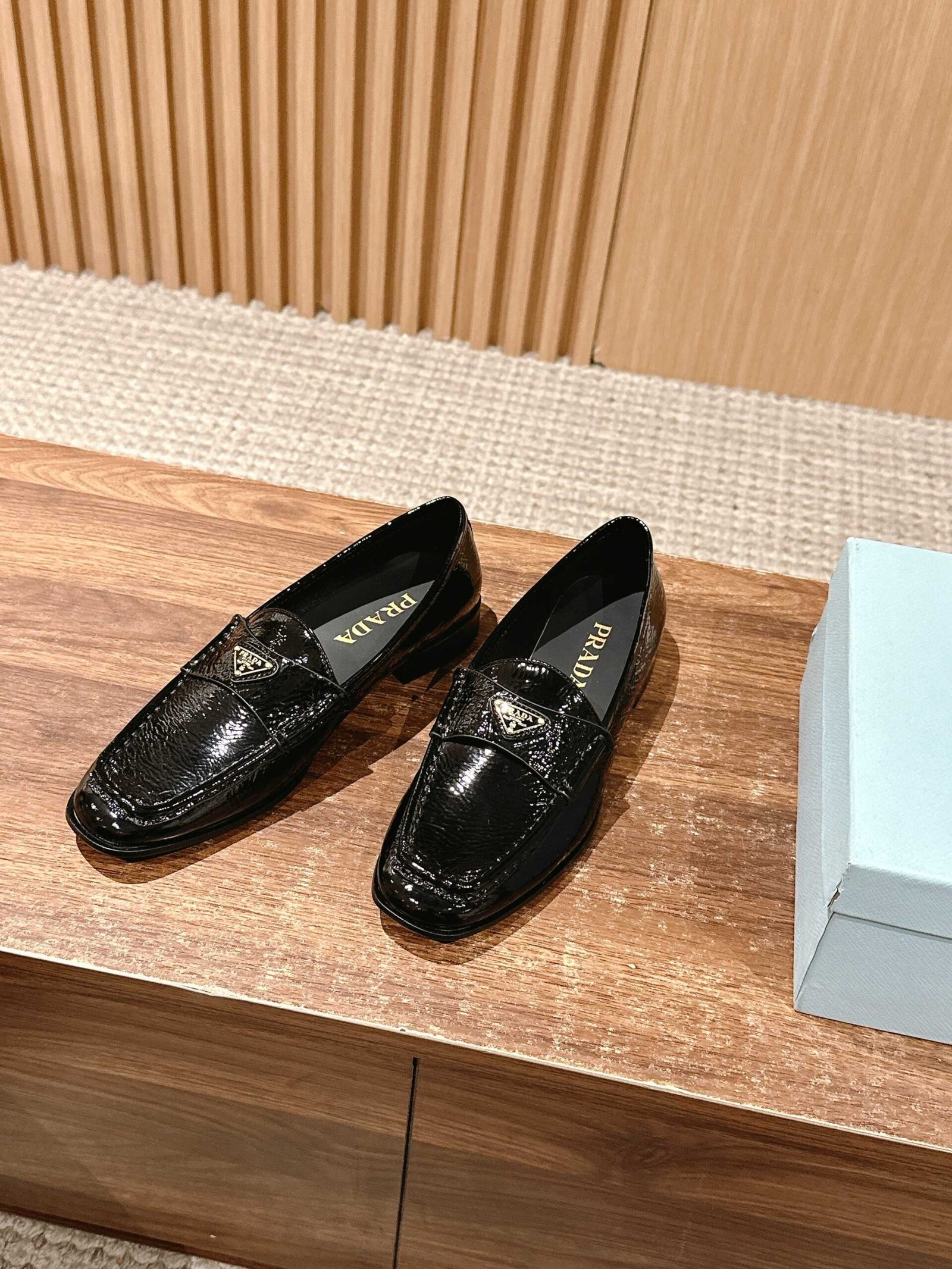 Home SHOES PRADA 𝐏𝐑𝐀𝐃𝐀 𝟮𝟬𝟮𝟱/ 𝐬𝐬 Prada Spring/Summer Loafers Wrinkled patent leather Creating a sense of casual and loose atmosphere, the shoes are also loose with a slightly formal sense of straight lines, embellished with triangular labels, exquisite and advanced!Size 35-39 (40/41 customized non-returnable)