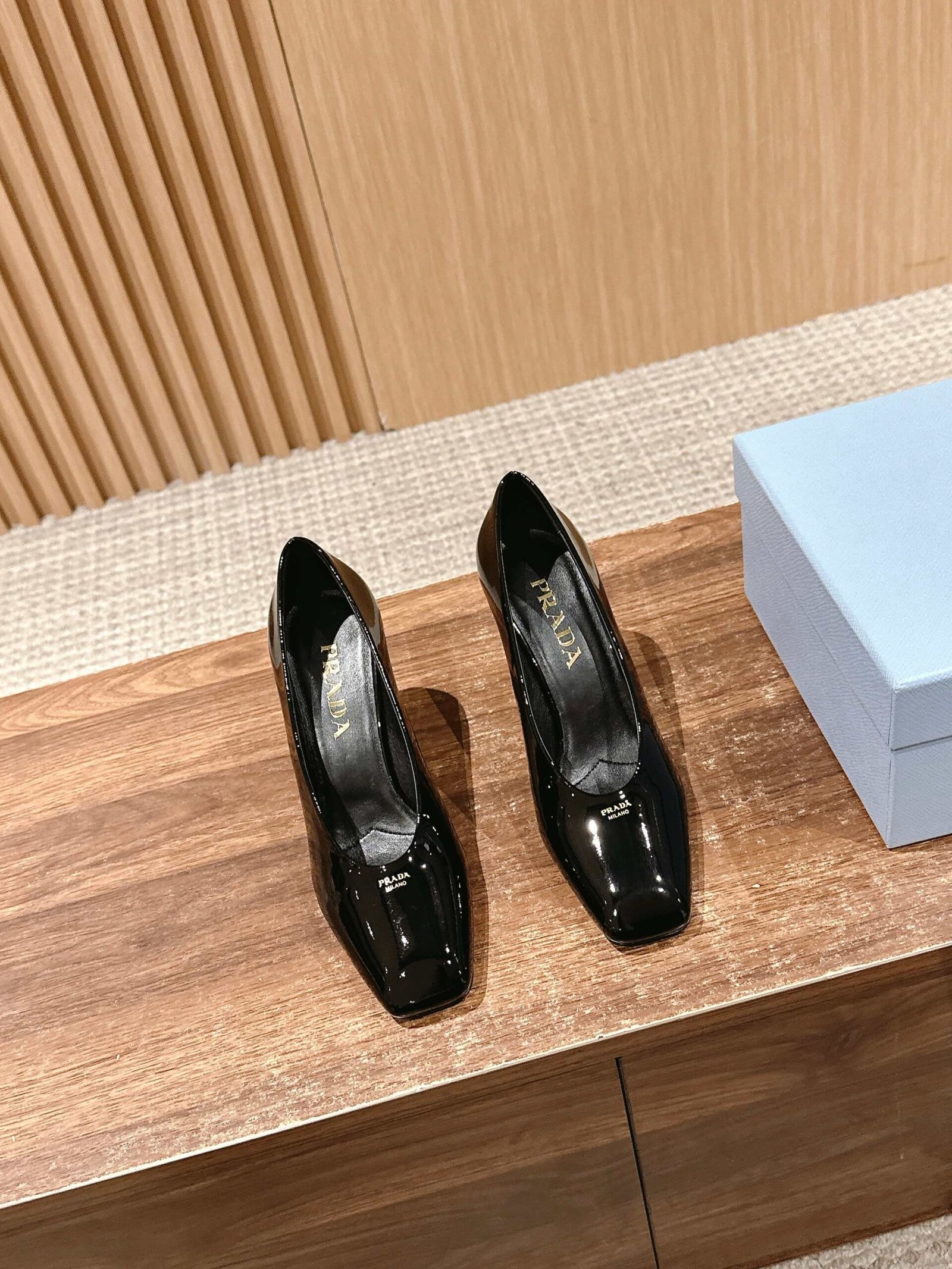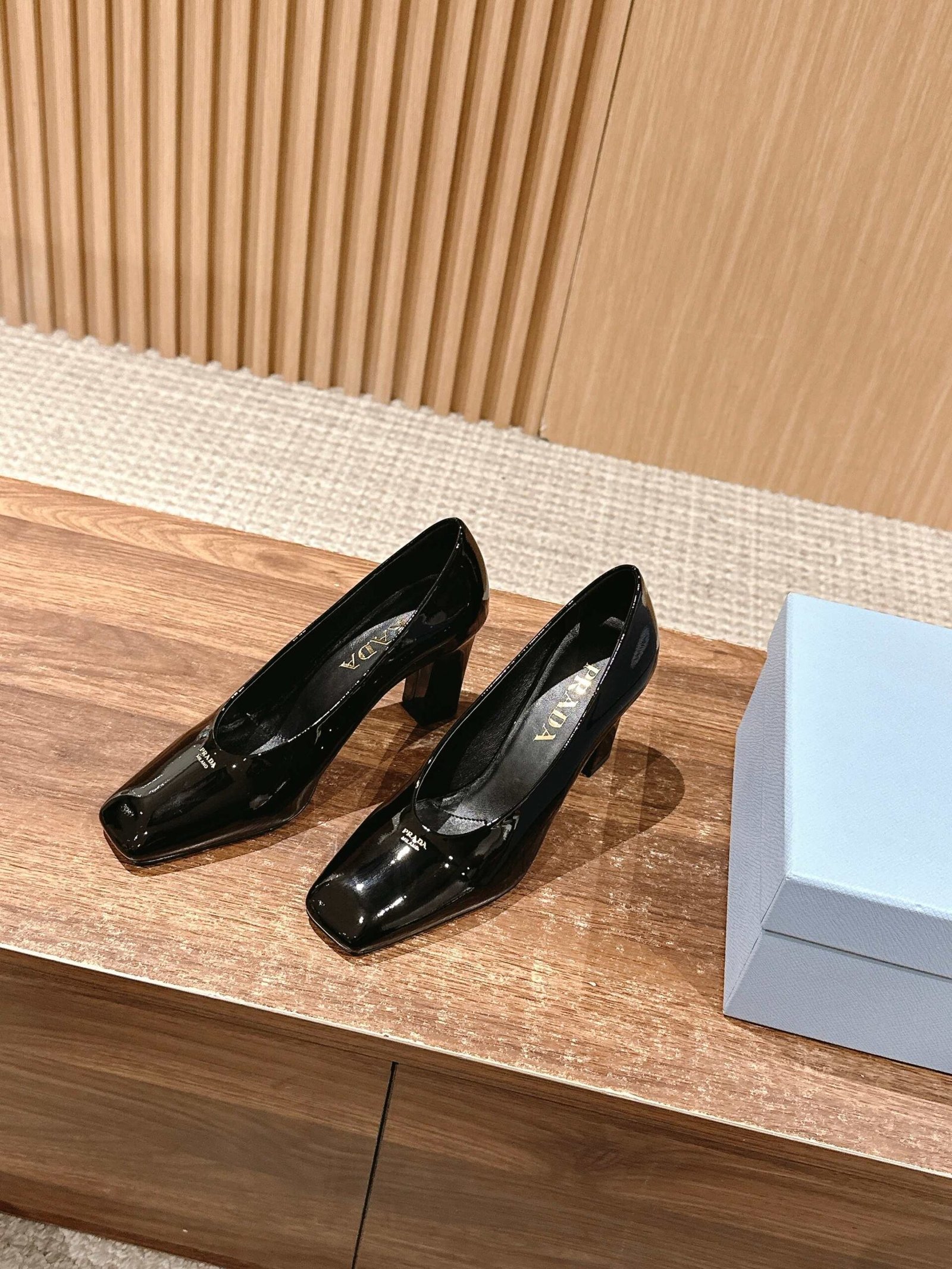 𝐏𝐑𝐀𝐃𝐀 𝟮𝟬𝟮𝟱/ 𝐬𝐬 Prada Spring/Summer New Patent Leather Heeled Sandals Single Shoes