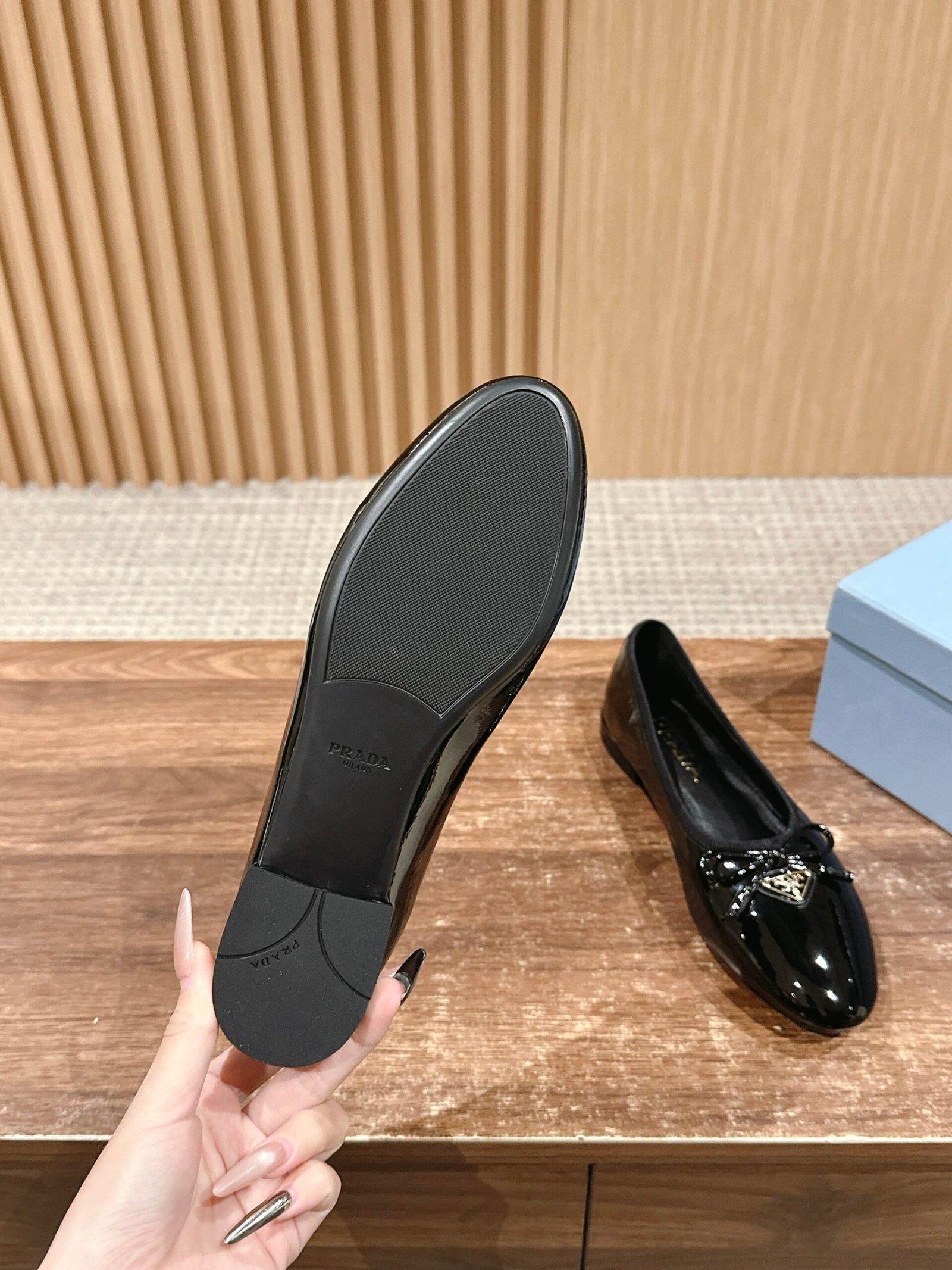Home SHOES PRADA 𝐏𝐑𝐀𝐃𝐀 Prada spring and summer new round head triangular label Mary Jane single shoes ballet flats nn fashionable versatile nice single product, all kinds of beautiful women to stand firm, exclusive on the new la! Like to wear high heels and afraid of tired sisters look over, flat bottom absolutely let the footsteps light, 100% not tired feet, on the foot steady ease! Wrinkled lacquered cowhide material Sheepskin lining TPU outsole nn Size: 35-39 (34/40 customized non-returnable)