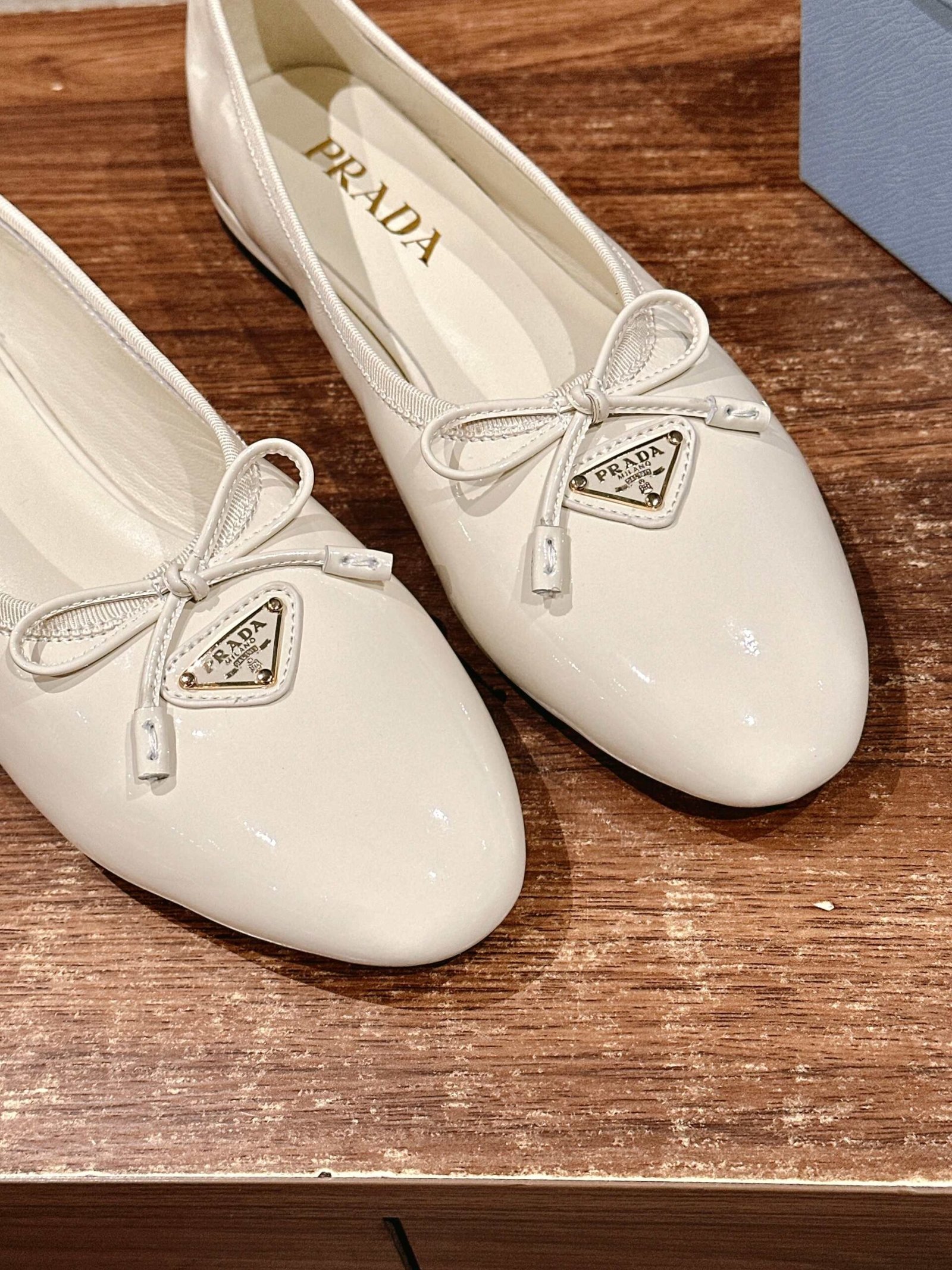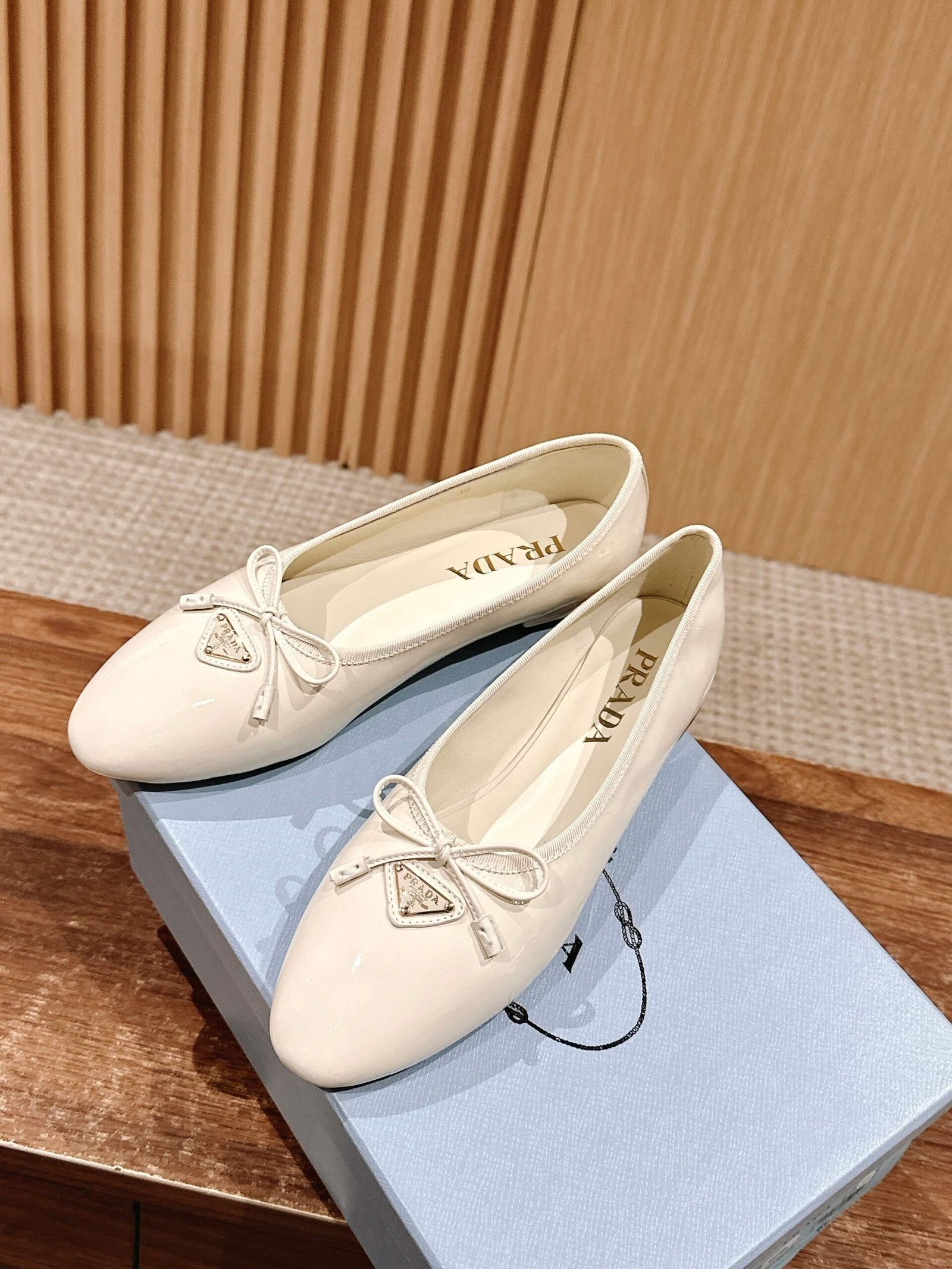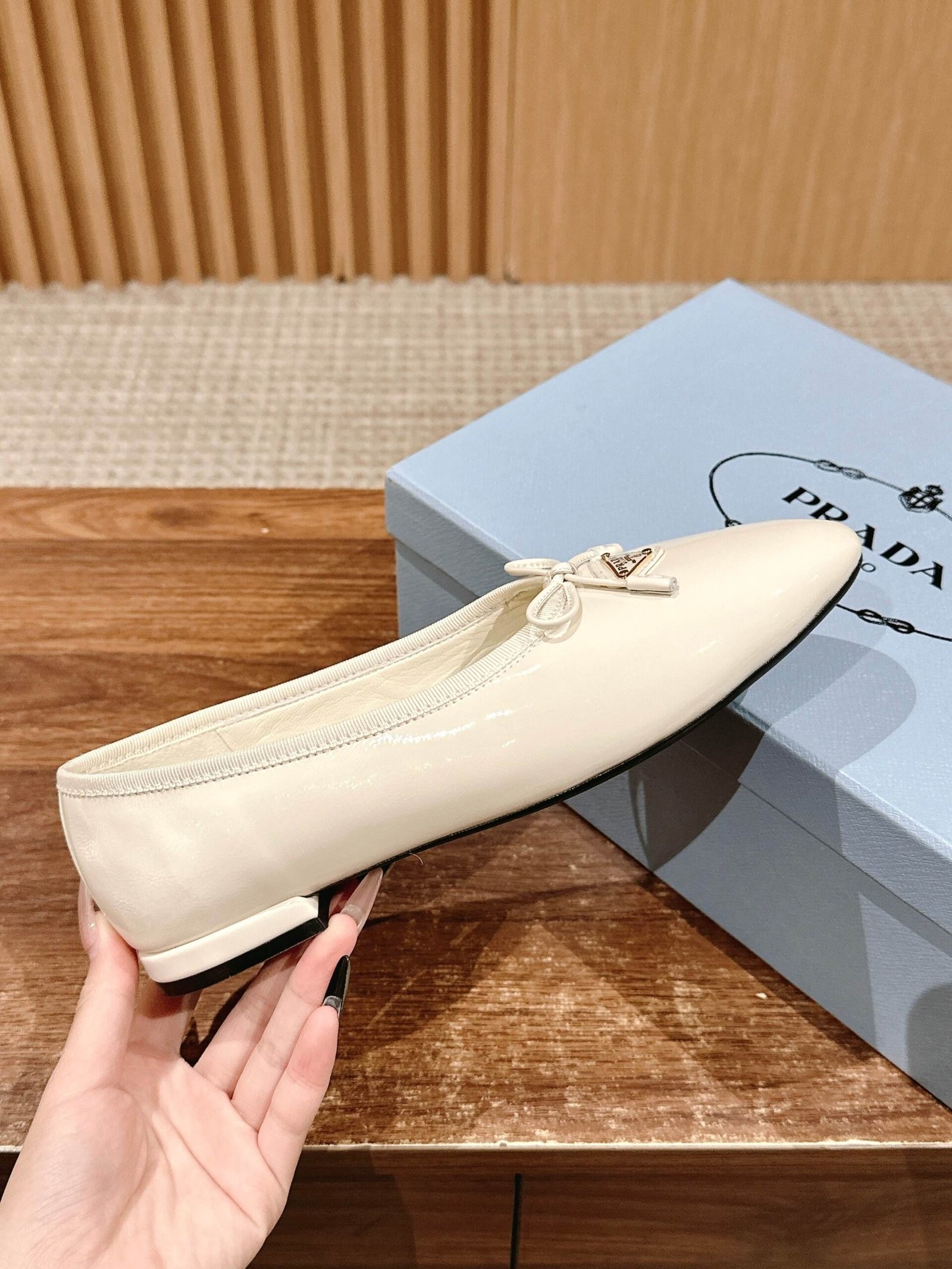 𝐏𝐑𝐀𝐃𝐀 Prada spring and summer new round head triangular label Mary Jane single shoes ballet flats