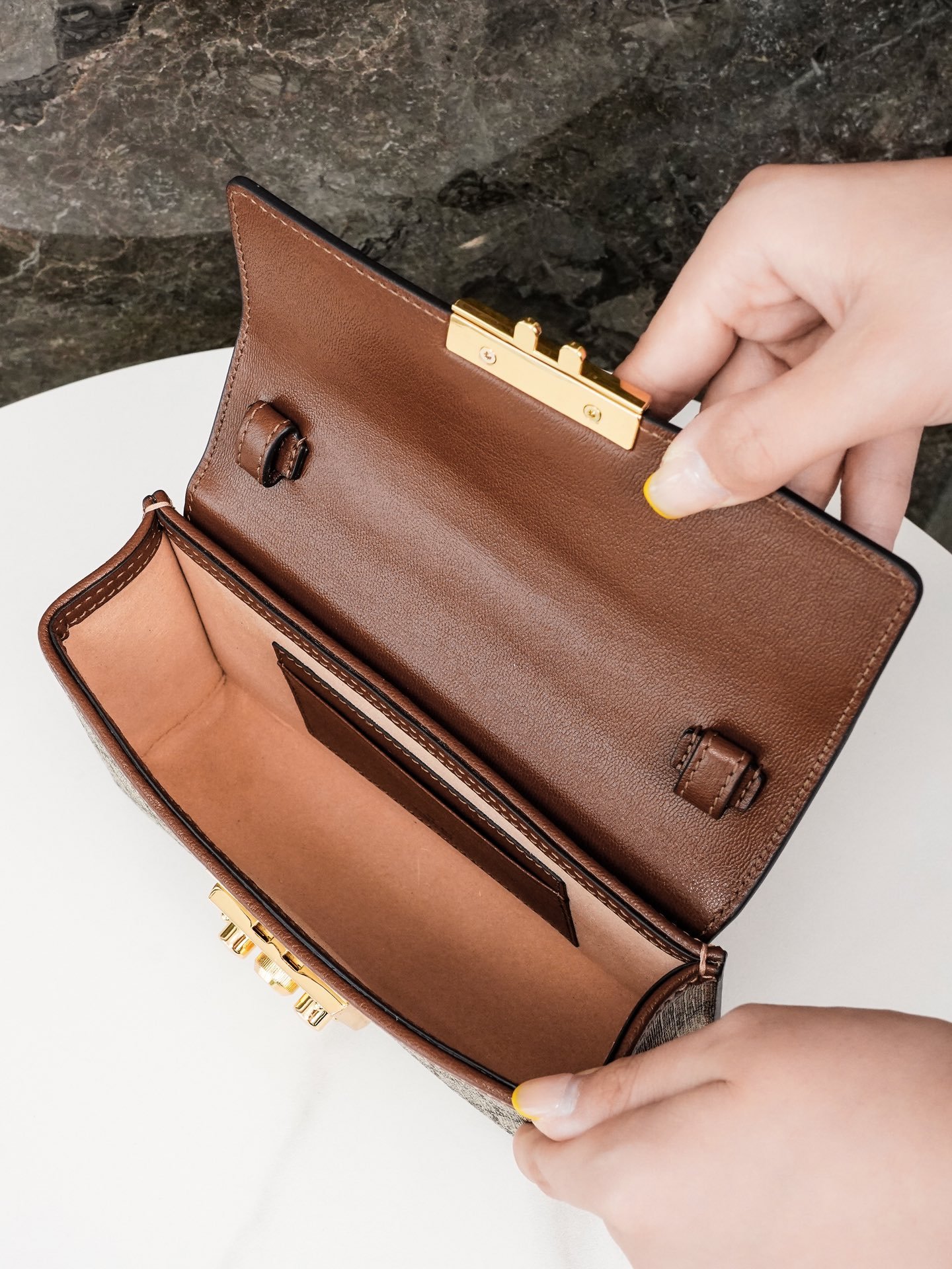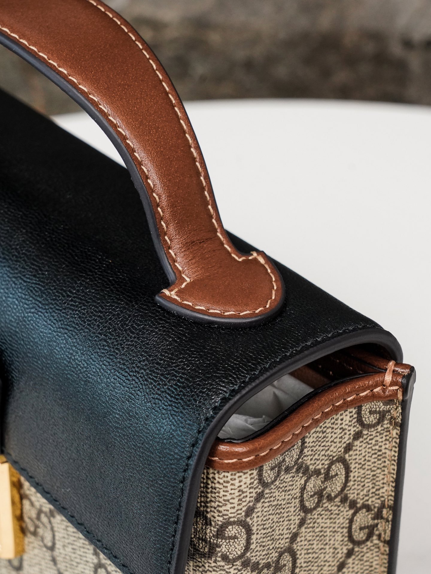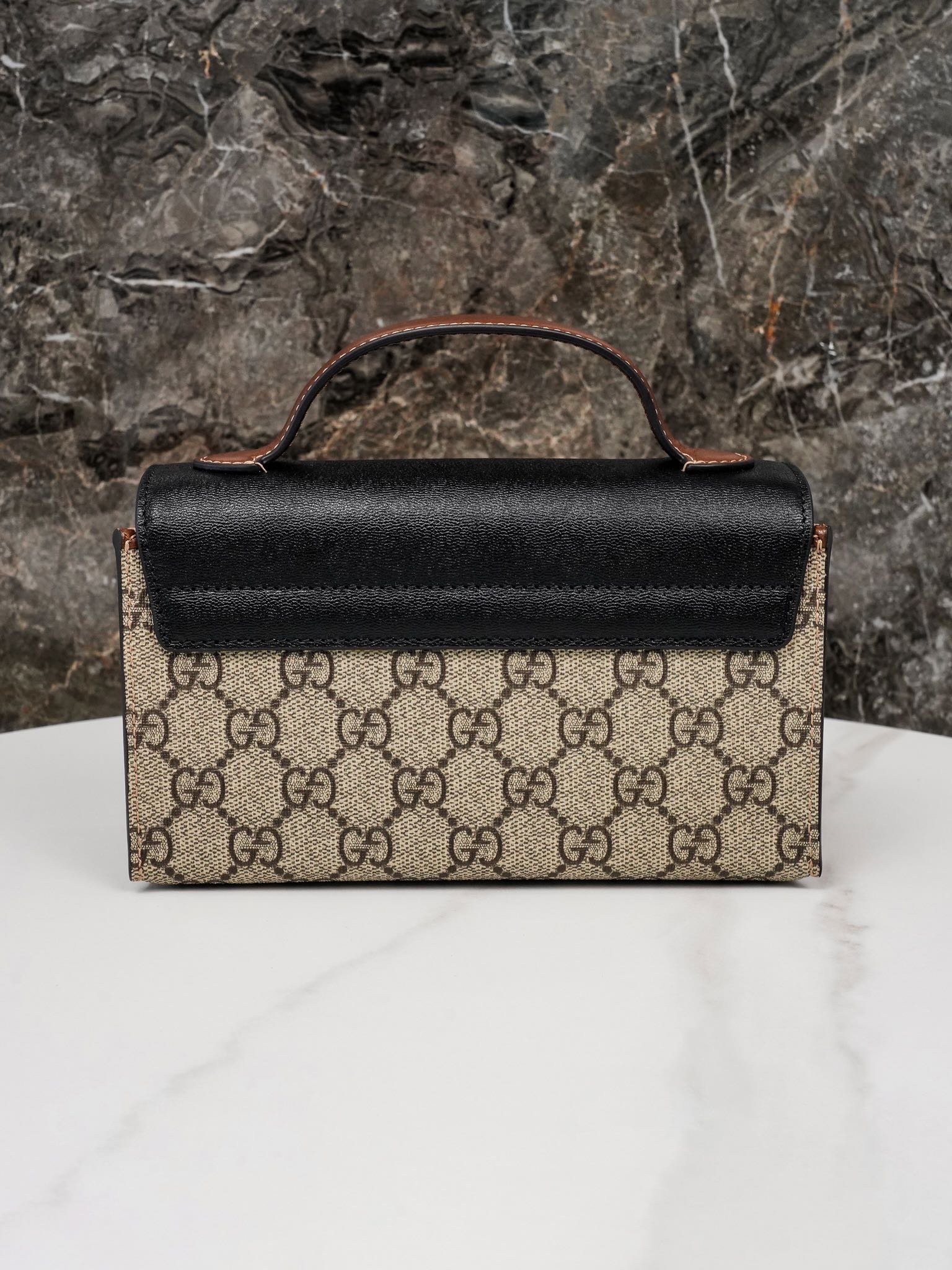Padlock collection introduces a new mini handbag with a colorful use of leather and canvas materials. The new mini handbag from the Padlock collection features a colorful mix of leather and canvas for a striking look. Crafted in the brand’s distinctive double G monogrammed canvas, the bag features a black leather upper body with the collection’s signature lock detail. A brown leather shoulder strap and carry handle add eye-catching contrasting details. The brand makes excellent use of different materials and color tones to create a fashionable mix and match design.