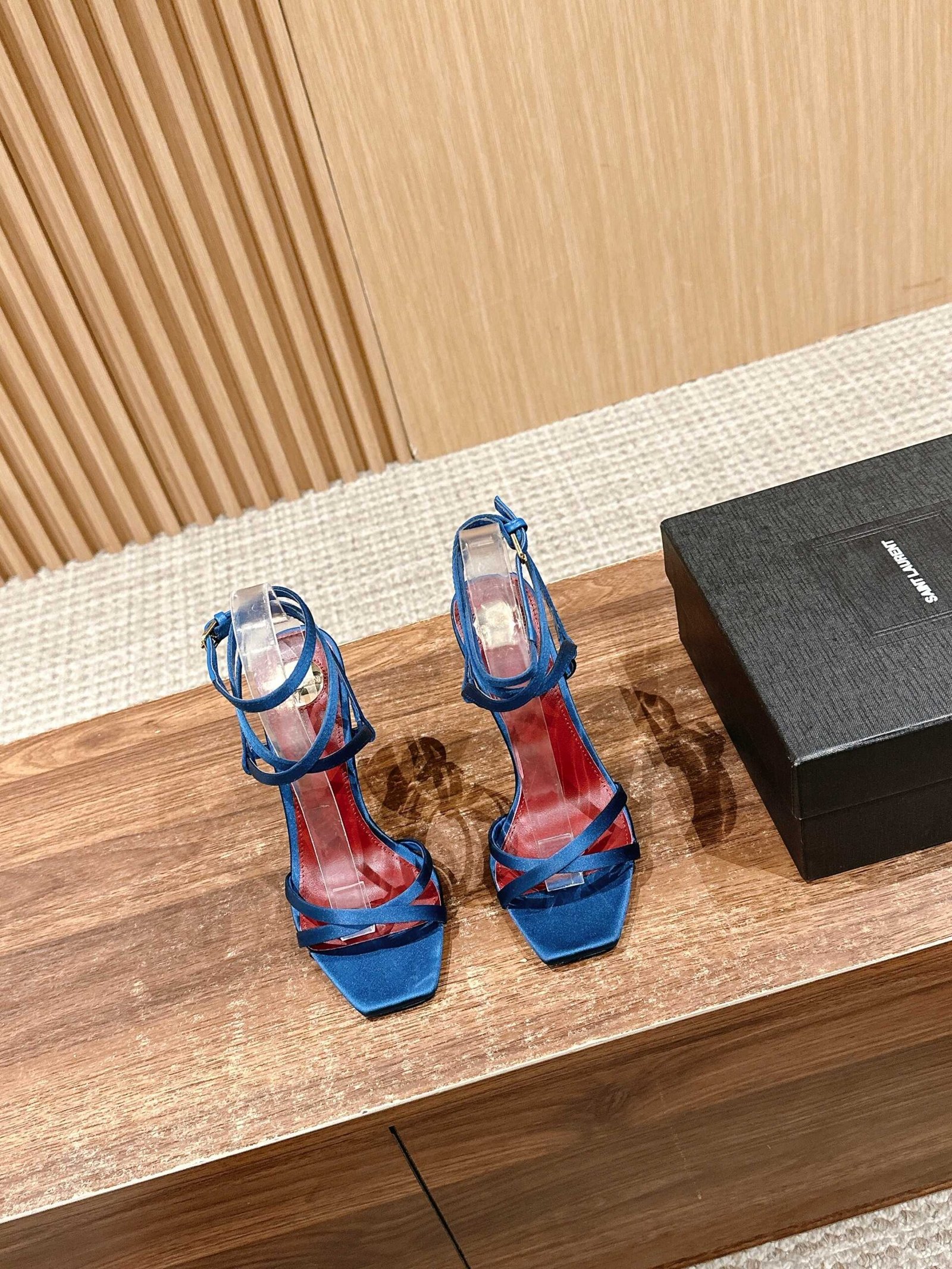 ๐’๐€๐ˆ๐๐“ ๐‹๐€๐”๐‘๐„ ๐ ๐˜๐’๐‹/ St. Laurent new Miss Miss’s Beautiful Eureka high-heeled sandals Elegant and charming sexy Women’s taste full Upper silk โž• super flash rhinestones Sheepskin lining Italian leather outsole Heel height of 10cm Size: 35-39 (40 customized non-returnable)