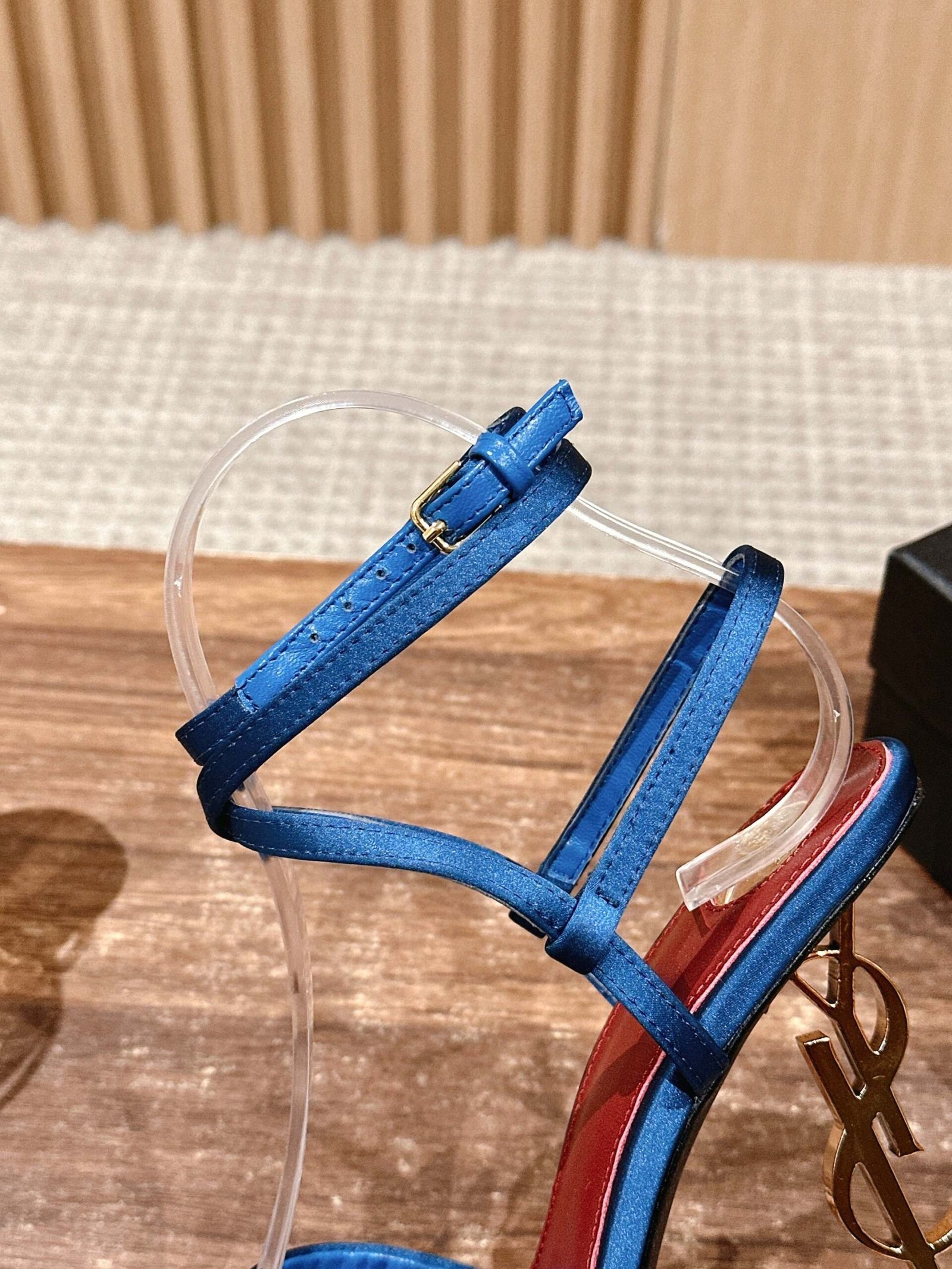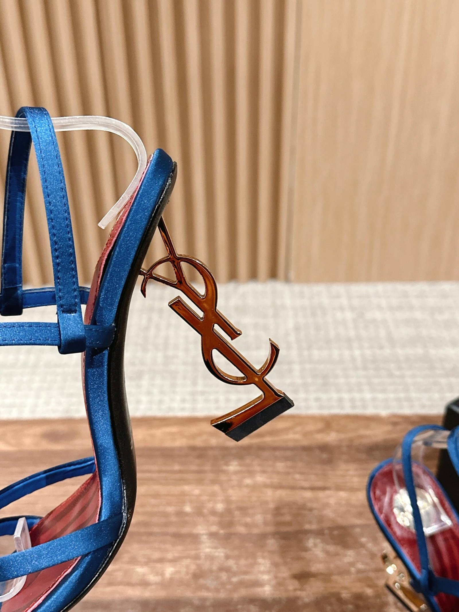 whole are wrapped around the The thin straps of the sandals! On the foot is very good-looking! The unique fabric brings visual enjoyment! With careful color mixing, with ysl exclusive logo gold heel, cross ankle strap on the foot show leg thin leg long, the overall visual attraction sense is very strong! Temperament is also very good with either daily or special occasions! All can feel the unique charm!