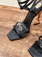 whole are wrapped around the The thin straps of the sandals! On the foot is very good-looking! The unique fabric brings visual enjoyment! With careful color mixing, with ysl exclusive logo gold heel, cross ankle strap on the foot show leg thin leg long, the overall visual attraction sense is very strong! Temperament is also very good with either daily or special occasions! All can feel the unique charm!