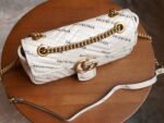 The Aria – Fashion Aria fashion collection explores the world of fashion with the launch of The Hacker Project collection! for the concept of originality and appropriation. Alejandro Micheli pays homage to heritage and classicism with the new collection, colliding iconic Balenciaga silhouettes with Gucci elements in a witty and harmonious new idea. As part of this special collection, this GG Marmont shoulder bag is reinterpreted in “Balenciaga” printed white leather.