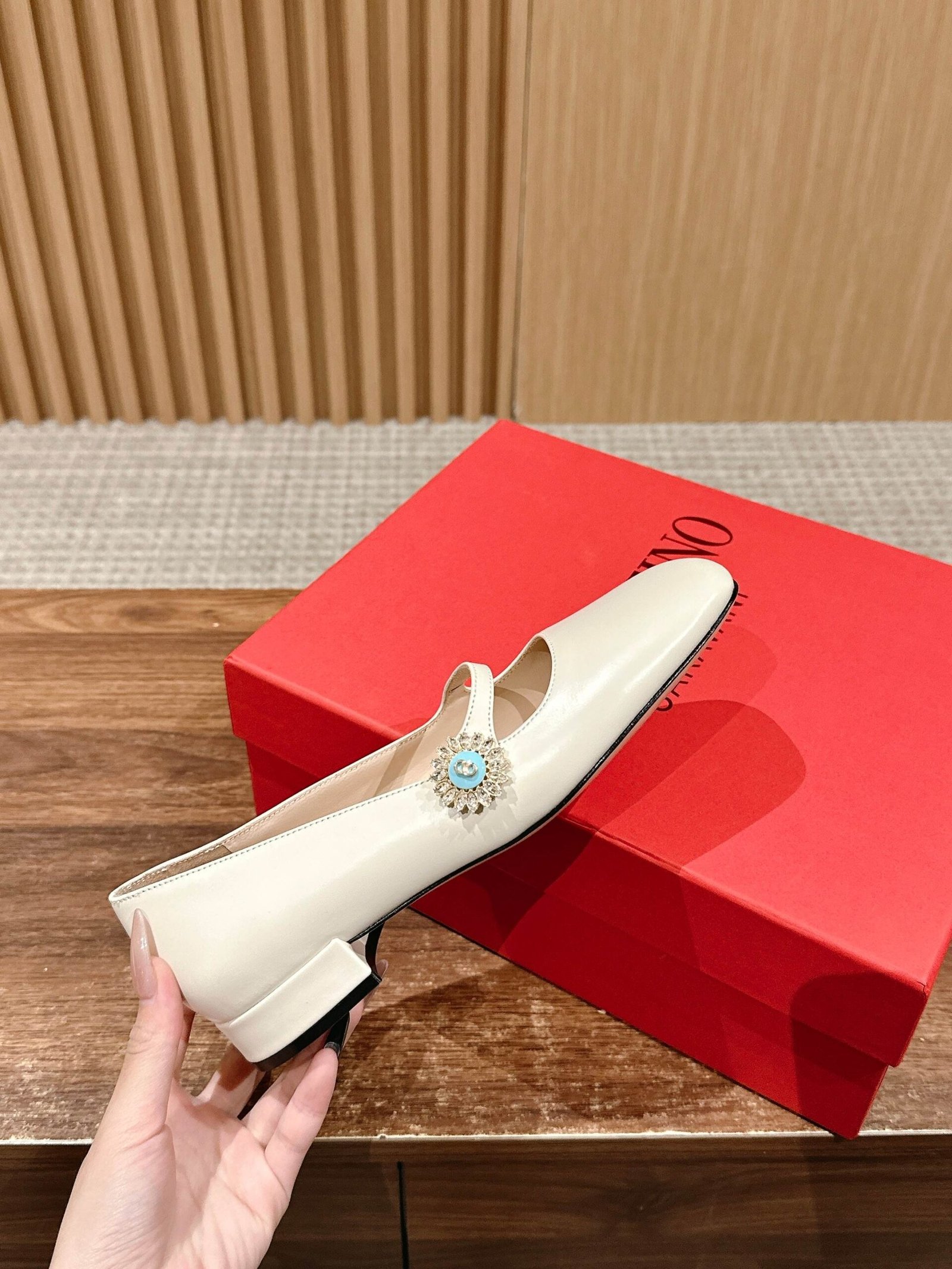 difference between the market version Only the top 👏 Valentino Brigade the latest models of the spring and summer models! Super beautiful shoes! This one is really absolutely beautiful! The diamond embellishment on the vamp adds temperament and elegance and is very durable! String square head short heel good walking not tired feet beautiful! Valentino you do not too good at new products! The height of the small chunky heel is just right!