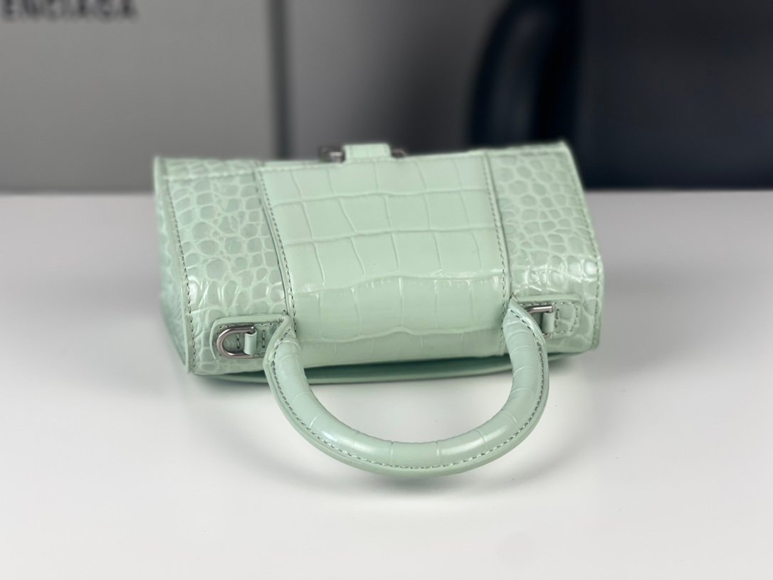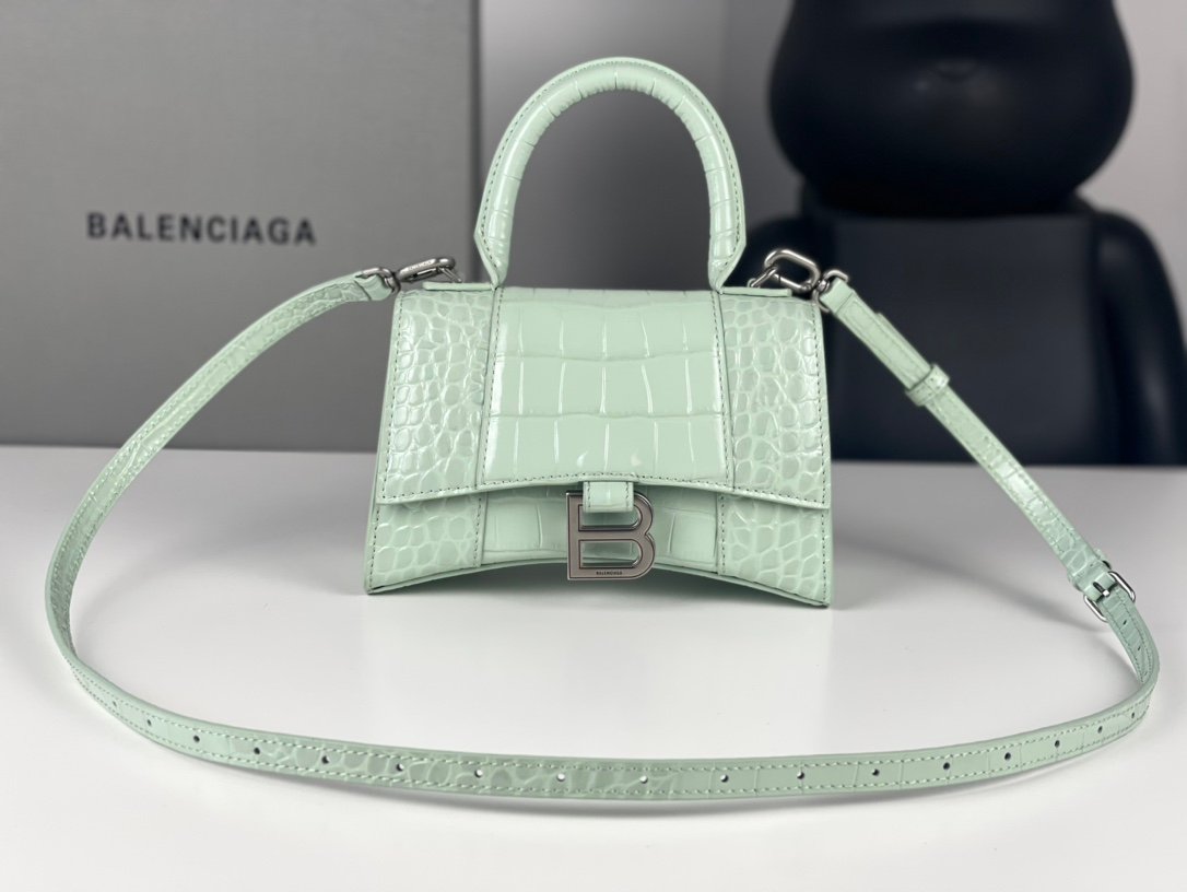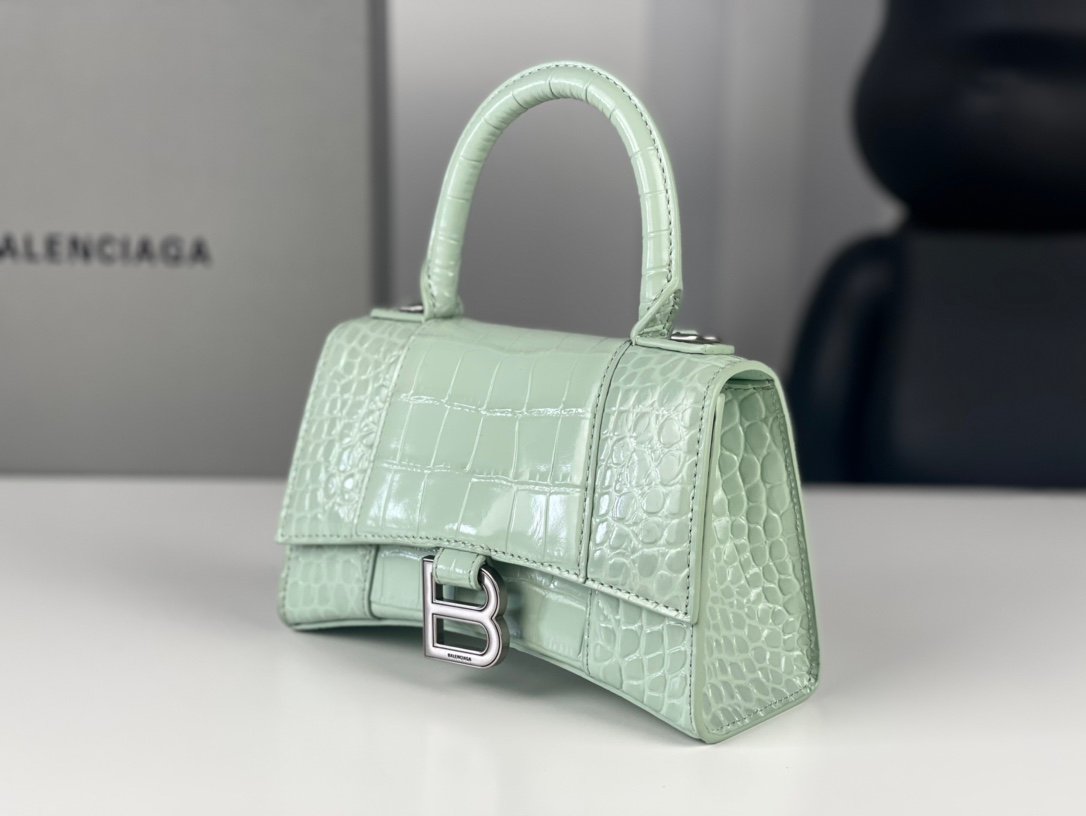 #๐—•๐—ฎ๐—น๐—ฒ๐—ป๐—ฐ๐—ถ๐—ฎ๐—ด ๐—ฎ# Crocodile Pattern Mint Green/Silver Bucklen [Upgraded Original Leather Version] Size XS – 19cmn Crocodile Pattern Original Leather Version ๐—›๐—ผ๐˜‚ ๐—ฟ๐—ด๐—น๐—ฎ๐˜€๐˜€ Hourglass bag New arrival! n๐ŸŒŸ Made of original Italian crocodile grain cowhide, clear crocodile grain is comparable to real crocodile, excellent touch, always show taste! n๐ŸŒŸ Imported bronze hardware! Super personalized B-shaped pull buckle, this design I give full marks ๐Ÿ’ฏ, fashionable! Charming! n๐ŸŒŸ Unique iconic arc shape modeling is very recognizable, a glance makes people bright ah super cool! The appearance presents a round half-moon shape. n๐ŸŒŸ The inside of the bag is a large flat mouth, a zipper pocket inside, especially can be loaded! With lambskin lining, the loss is extremely high, the cost is extremely high! Do the best goods, waiting for the most knowledgeable you! n Model: 127 Crocodile Printnn XS size: 19x8x21cmn S size: 23x10x24cm