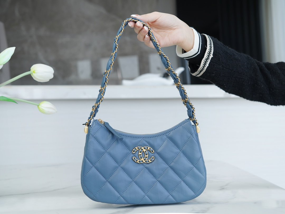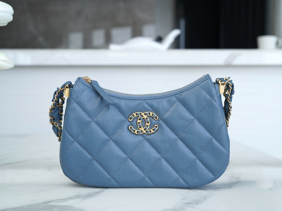 Vintage Pleated Cowhide Leather, the classic 19 leather through the chain double c-buckle addition, the shoulder strap of the comfort and details of the vintage sense of pulling the whole thing together, the low-saturated blue niche sense of the direct hit! Soul â¤ď¸âđĽ light luxury wind full đ