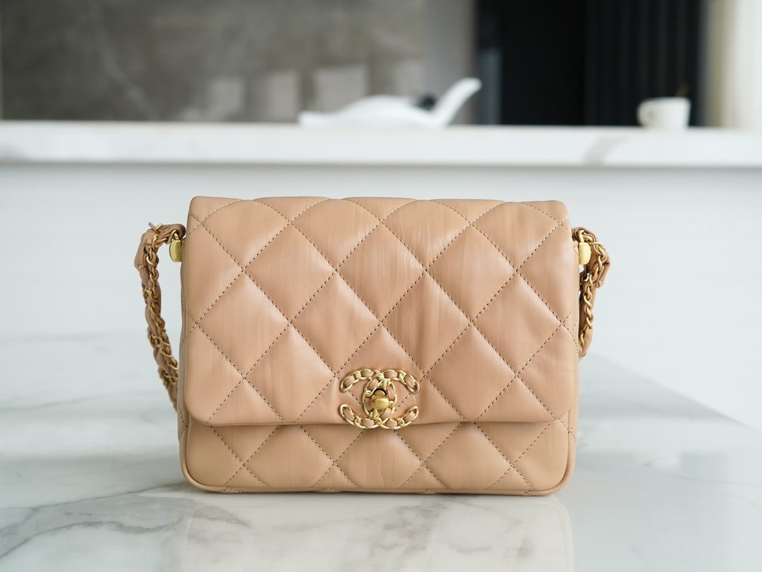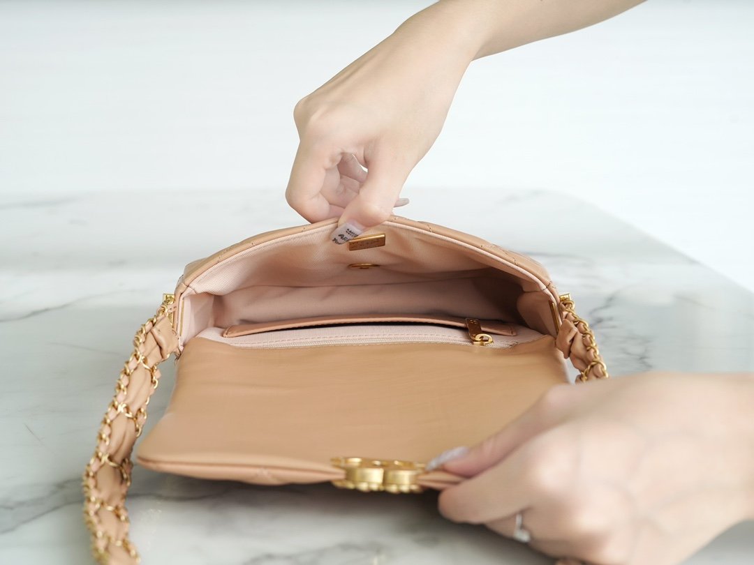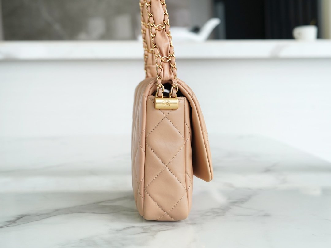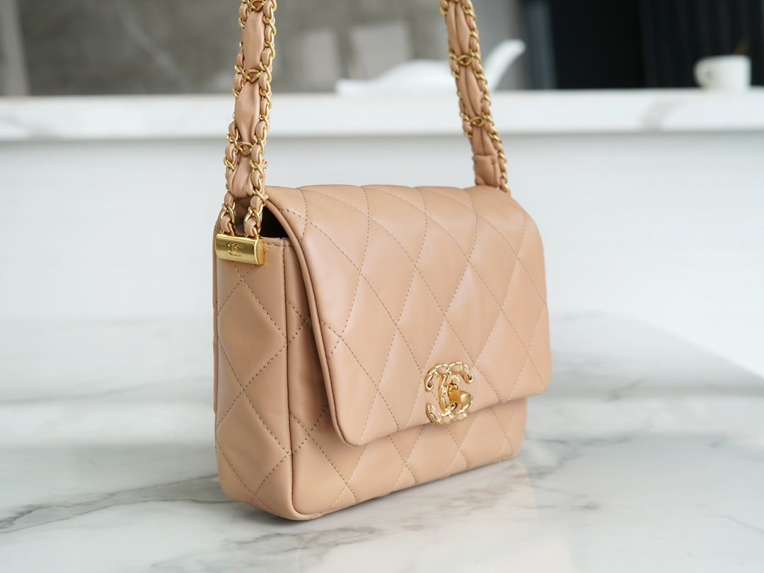 𝗖𝗛𝗔𝗡𝗘𝗟 23k Fall/Winter Series 19 Wide Shoulder Strap Mouth Cover Bag Milk Tea Apricot