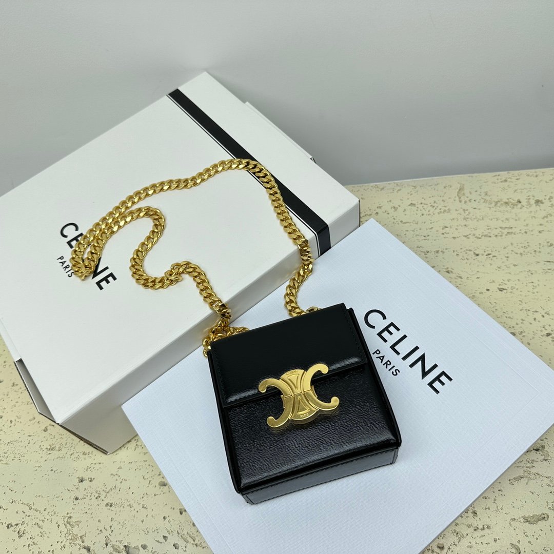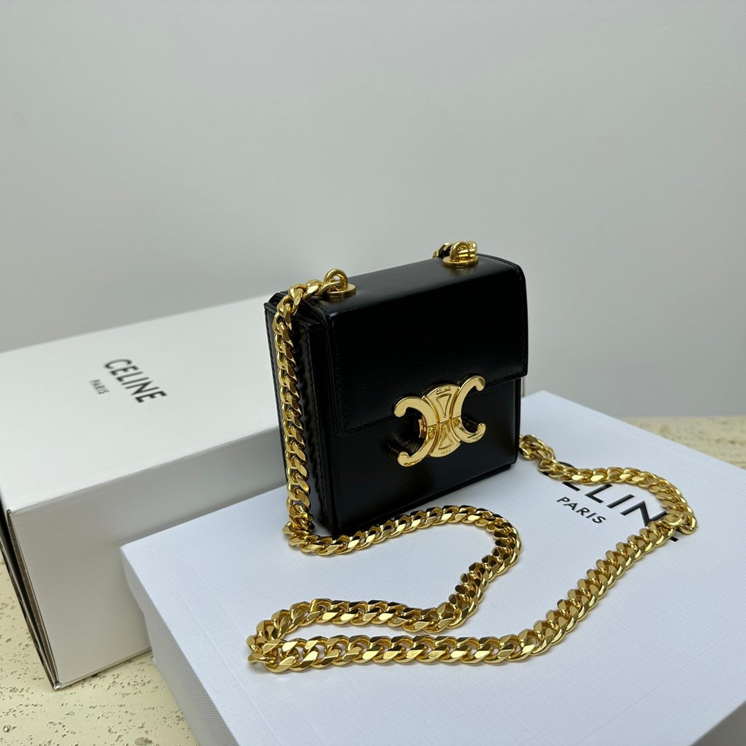 Home BAGS CELINE 🆕New 💗BOX TRIOMPHE Mini Glossy Cow Leather Handbagn4 X 4 X 2 inches (10 X 10 X 4 cm)nThis model will not fit a smartphone modelnCow LeathernSheep Leather LiningnShoulder CarryingnTRIOMPHE Metal Locking Claspn1 Main CompartmentnThe Chain Length is 18 inches (45 cm)nNumbered: 113253
