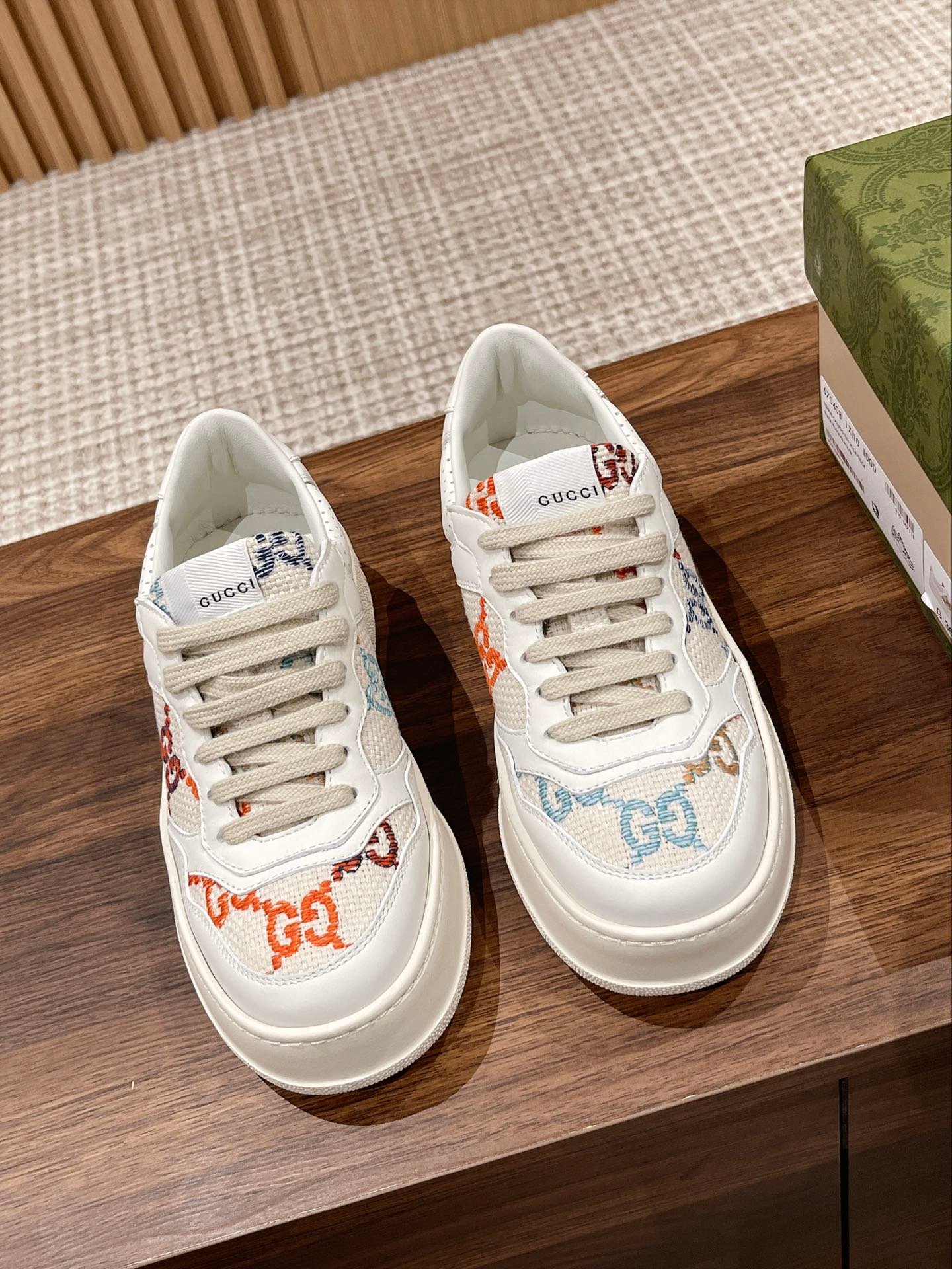 古驰最新饼干鞋 火爆厚底小白鞋 原版拆分完美复刻 各种经典时尚碰撞 复古情怀 十分高雅 超级百搭 轻盈厚底 增高显瘦又舒适 非常容易驾驭 进口牛皮面 牛皮内里 原版轻便ip大底 Size女码 男码nn