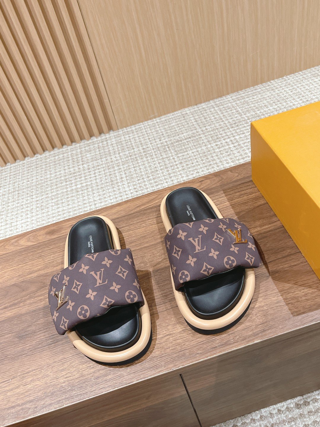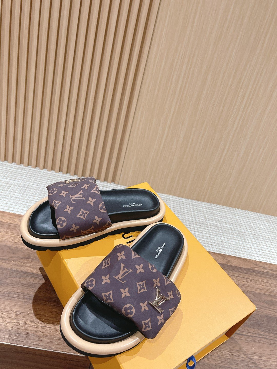 nLouis Vuitton one out of the peak of the super burst of models of the old flower slippers bread the feeling of soft feet soft and ultra-comfortable